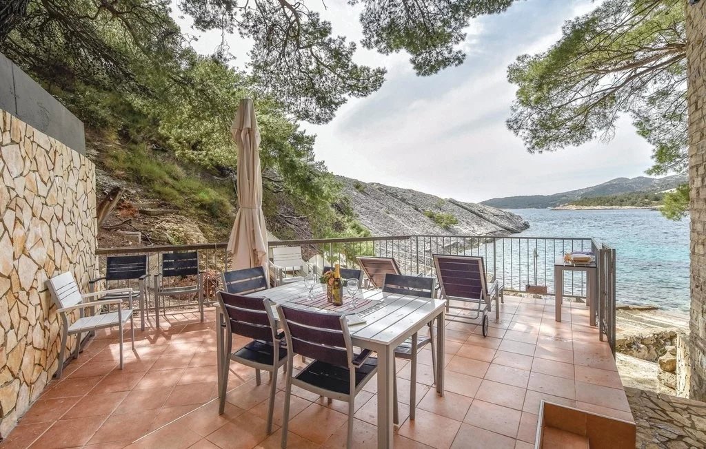 The island of Hvar is the queen of the Croatian Dalmatian islands. Very famous for its rich cultural heritage, natural monuments and literature. Thanks to the mild climate, during warm winters and pleasant summers, Hvar receives many guests, tourists attracted by the dense Mediterranean nature, rich tradition, architecture (UNESCO heritage) and nightlife. For years it has been known as the sunniest Croatian island, as well as the sunniest place in Europe, so it truly is a prime location to own property. Whatever you are looking for on your vacation, you may find it here; nightlife and cultural attractions of the cosmopolitan town of Hvar, boat trips to the Pakleni Islands, sandy beaches the ancient town of Stari Grad in which past centuries mingle with modern tourist facilities and many other giant islands such as Brač, Korčula and Mljet. This wonderful property is located 7 km from Hvar town center and close to the first beach. Originally built in 2009. this 105 m2 beachfront house on 2 floors has 4 fully equipped and functional bedrooms. Sitting comfortably in nature right on the beach, this house is the real deal! All covered in stone, this house is magnificent inside and out. The contrast between the white stone and the blue sea really makes this property stand out, making it almost like a photograph seen from afar. Surrounded by nature, right on the shore, you will hear the sound of the waves every day while experiencing these breathtaking sunsets. The simple yet stylish interior is fully decorated with modern appliances to ensure your place is perfect! This property is definitely a good choice for someone looking to escape the city lifestyle. Here, surrounded by nature, you can enjoy everything nature has to offer from the terrace of your own home. Having a private beach is almost a rare find and therefore this property is listed as a high value property. The absolute centerpiece is of course the previously mentioned proximity to the sea. Topped with a spacious terrace and many other features, this house could be your own home.
