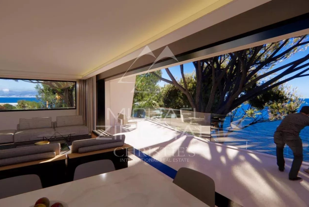 Located in the heart of Cap d'Antibes, near the beaches of La Salis, Keller, and La Garoupe, this villa is a true gem of the French Riviera. This beachfront property comprises an entrance hall, a large living room with dining area, a fully equipped kitchen with a central island and dining space, four bedrooms (one with a dressing room), two shower rooms, two bathrooms, a guest toilet, a laundry room, a pantry, two terraces, a landscaped garden, and a swimming pool with a summer kitchen and pool house including a fitness area. There is also a four-car garage