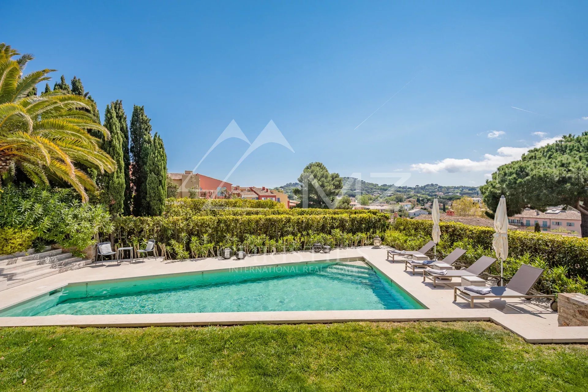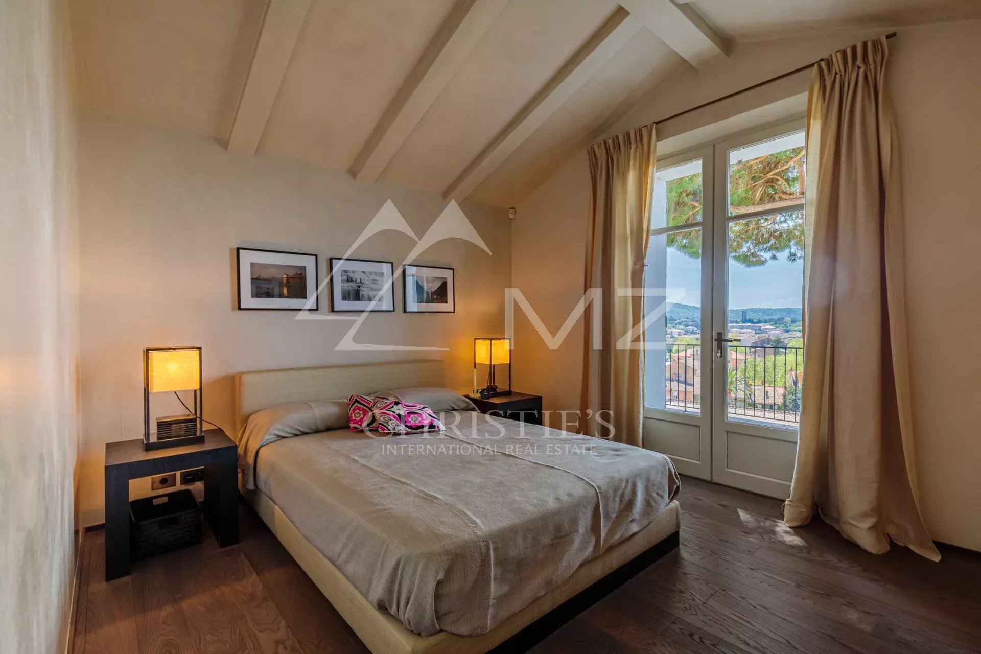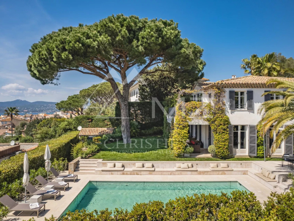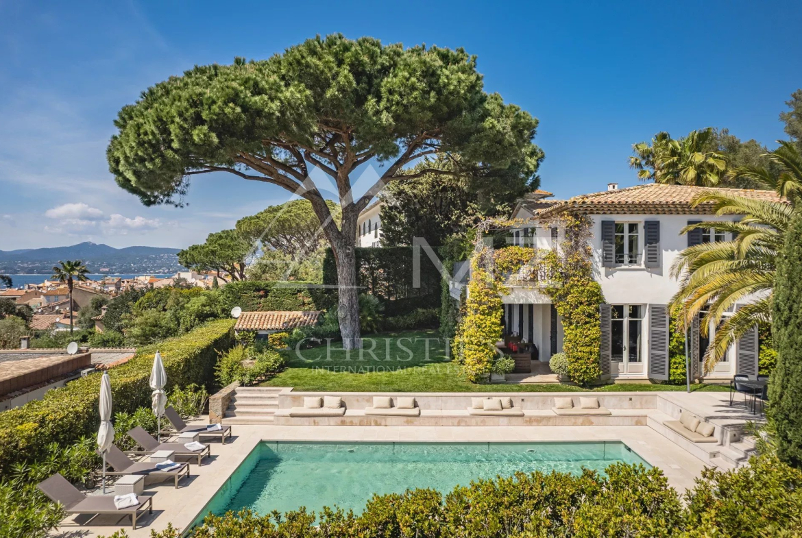 This exceptional property, boasting stunning unobstructed views of the sea and the village, is ideally located in the hills above Saint-Tropez, just a short walk from the famous Place des Lices and the port.