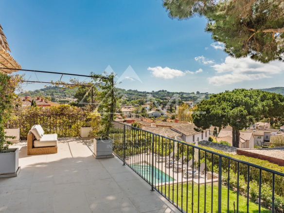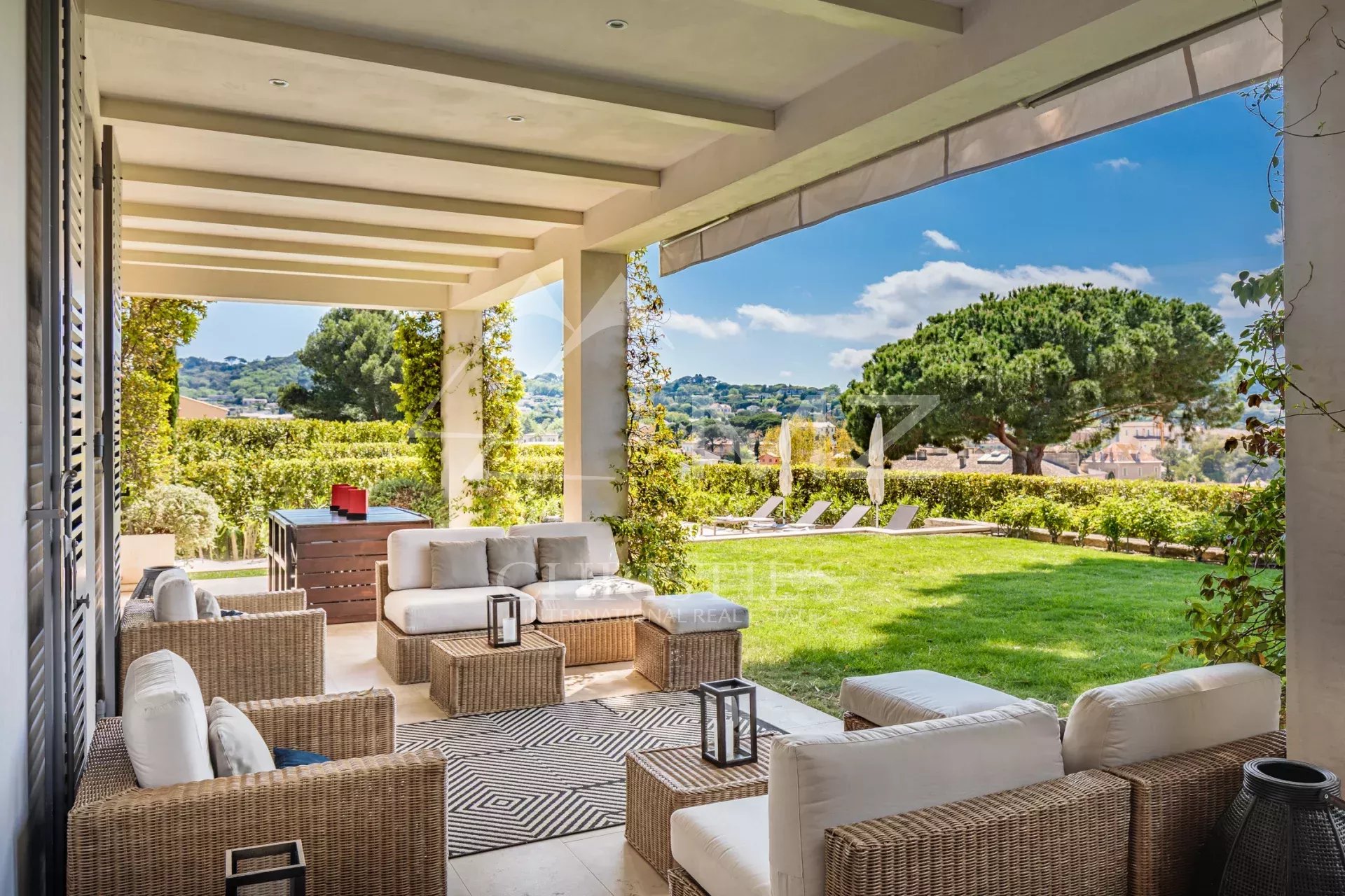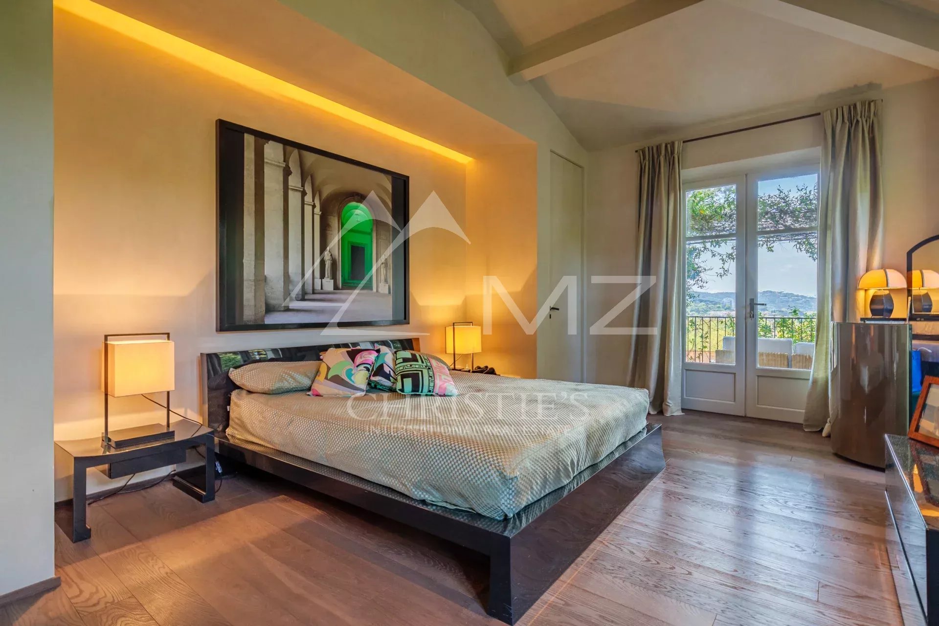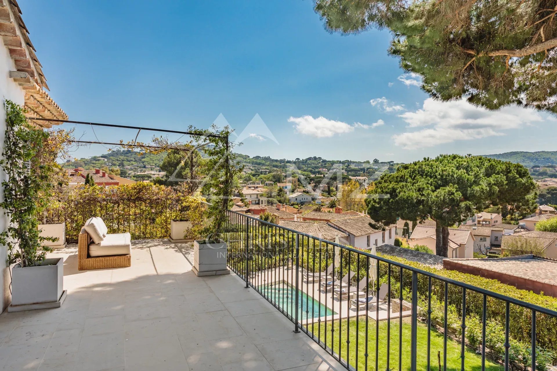 This exceptional property, boasting stunning unobstructed views of the sea and the village, is ideally located in the hills above Saint-Tropez, just a short walk from the famous Place des Lices and the port.