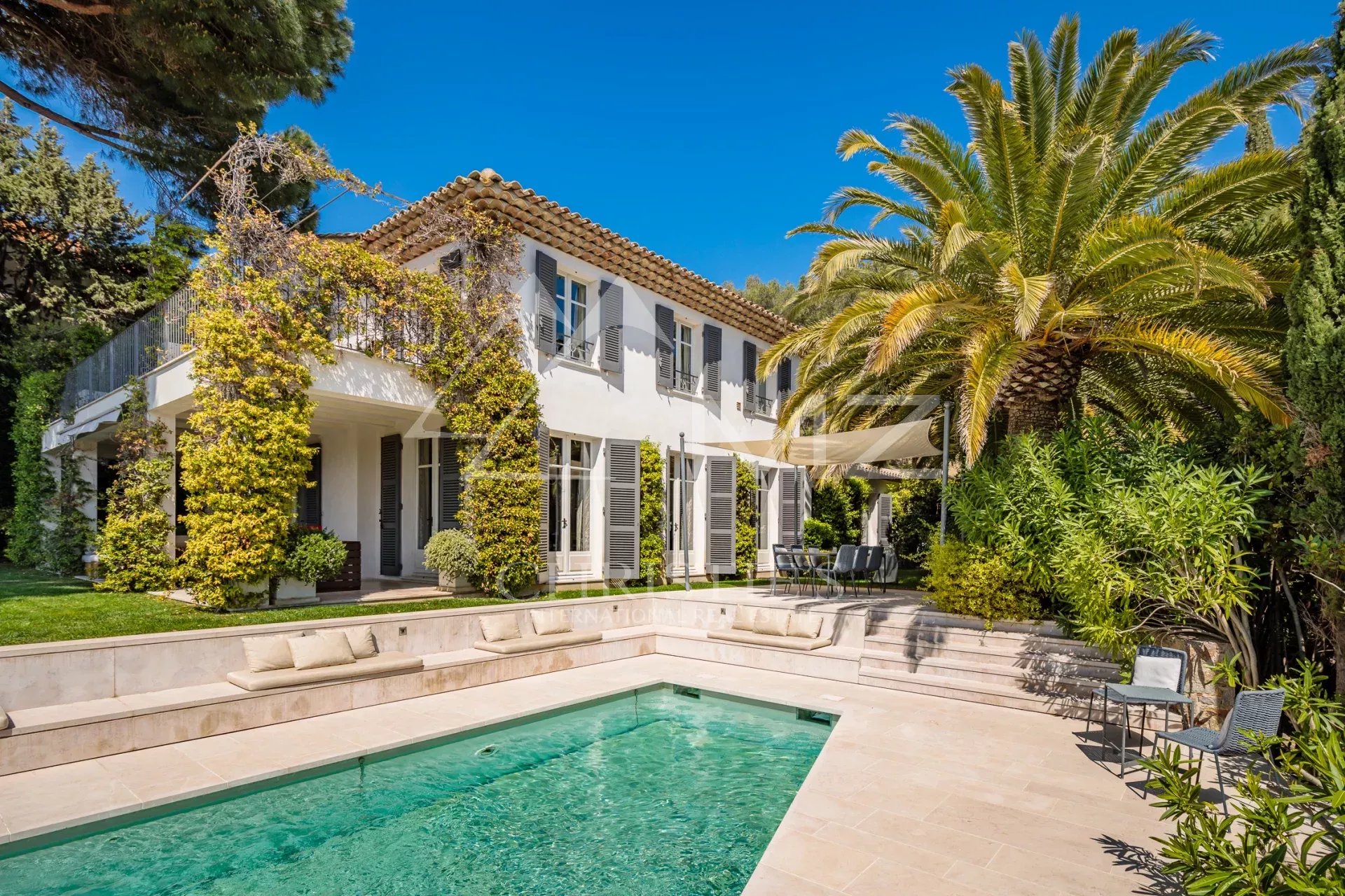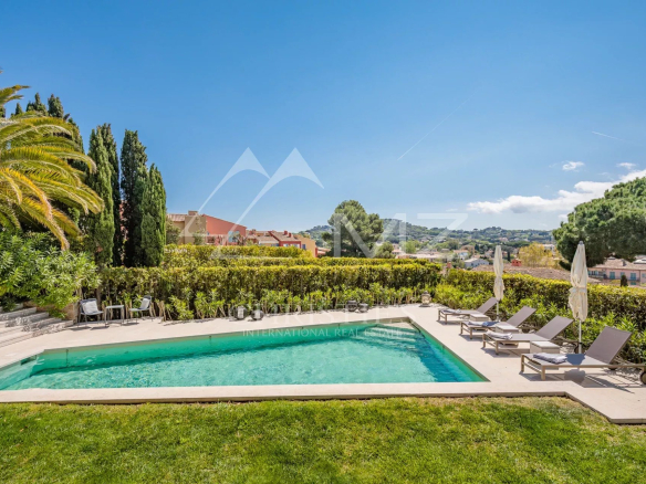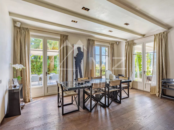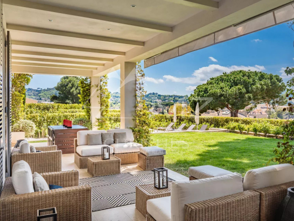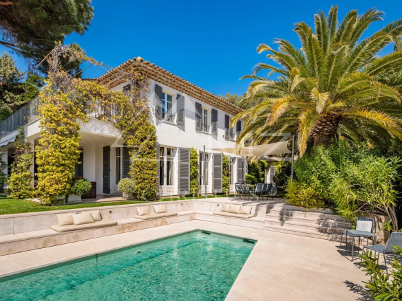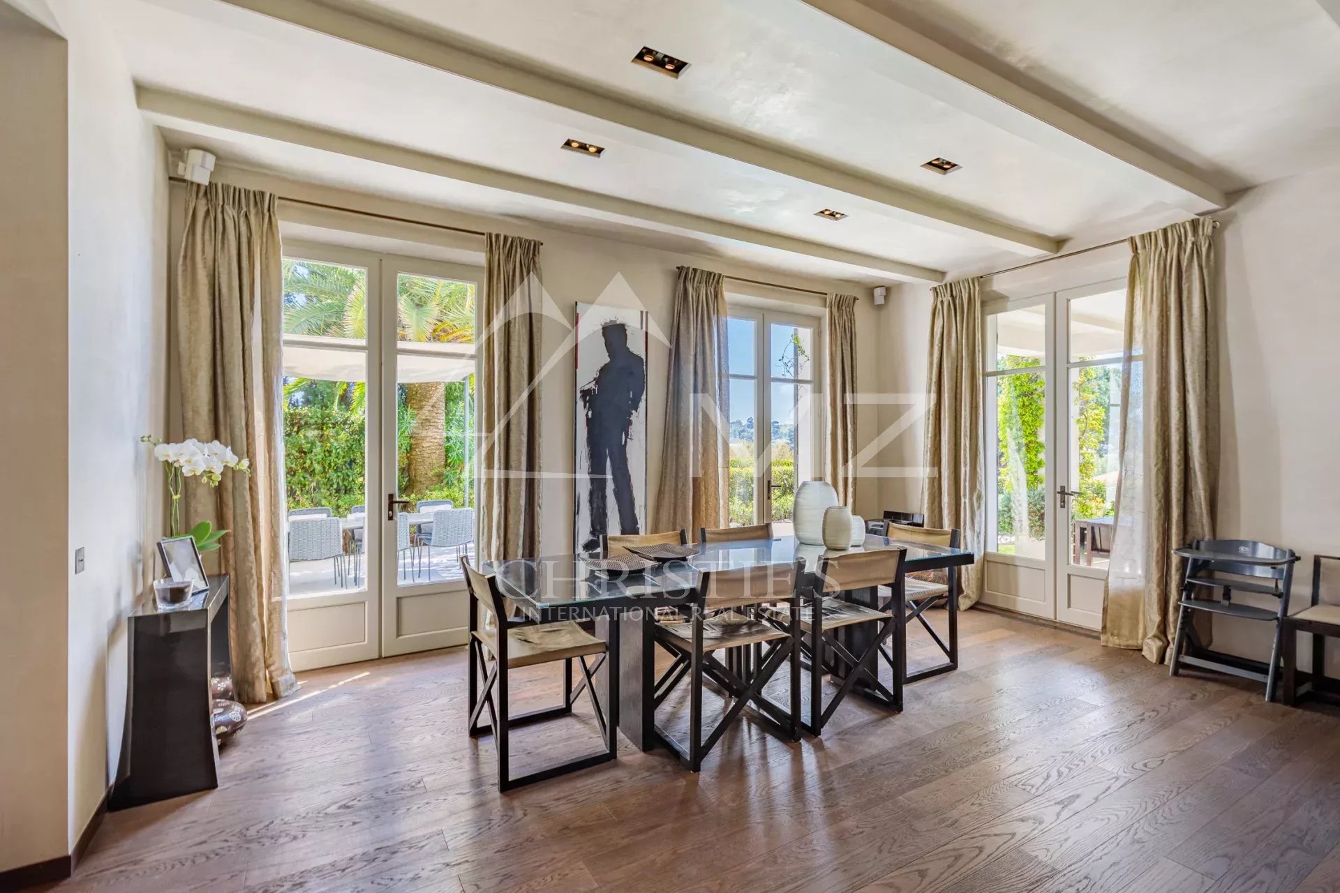 It comprises a magnificent living and dining room, a fully equipped kitchen, five bedrooms with en-suite bathrooms and toilets, including a master suite. The entire property opens onto a delightful landscaped garden with a heated swimming pool.