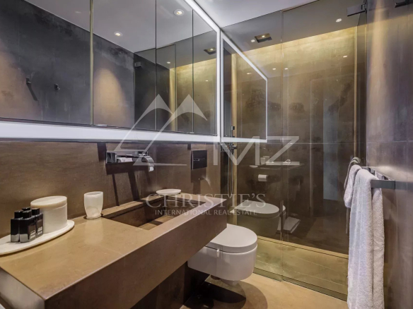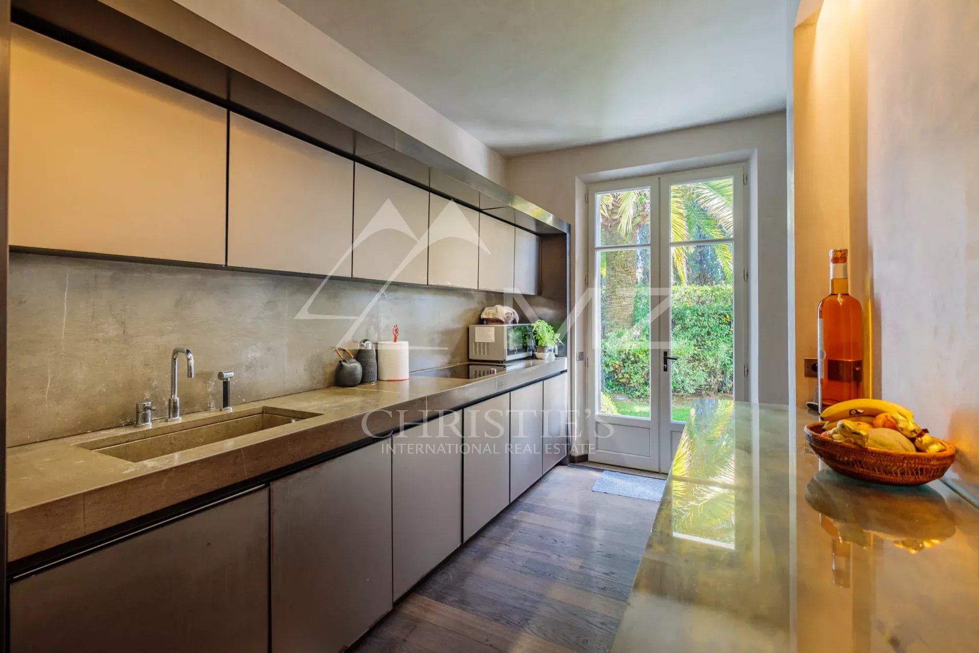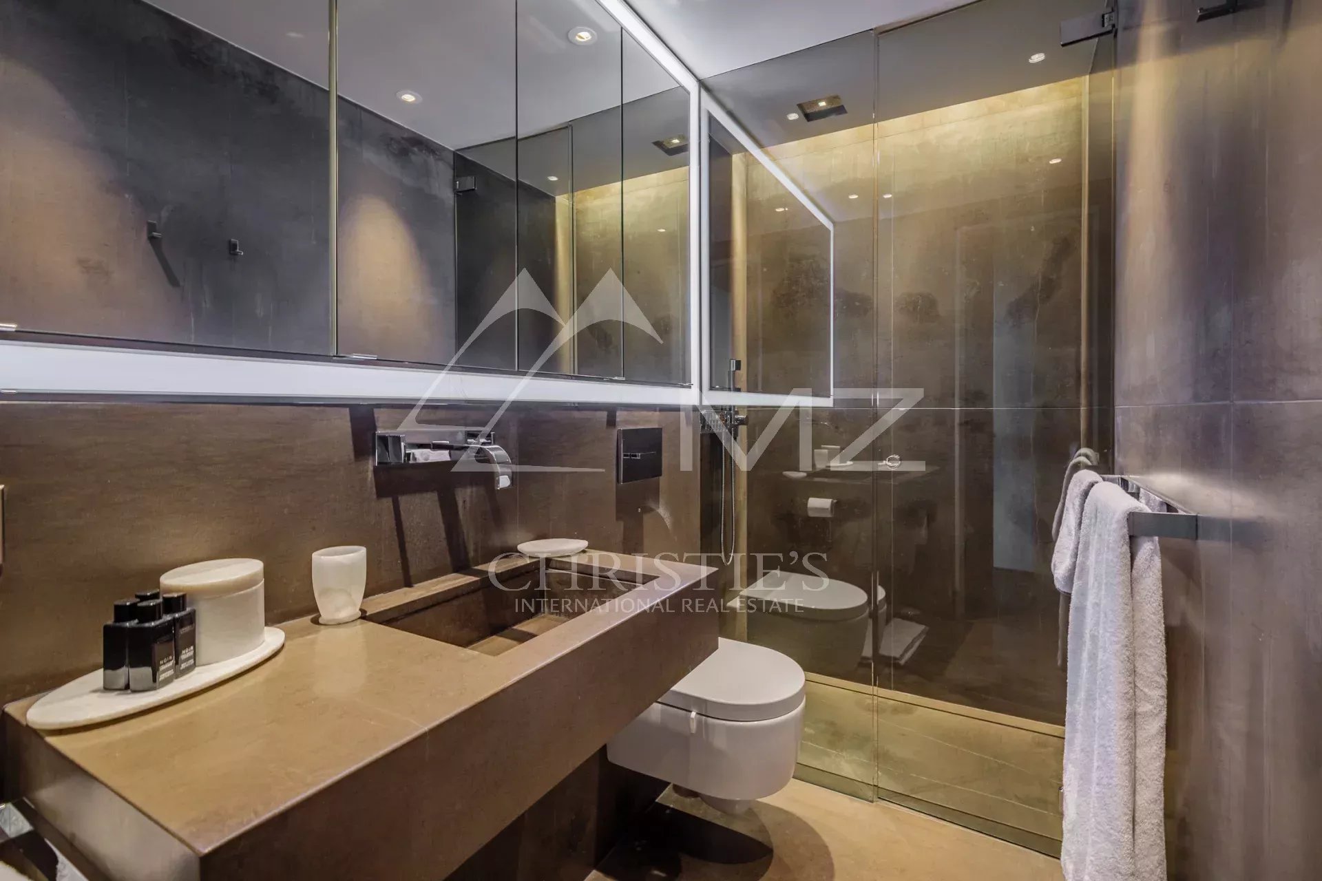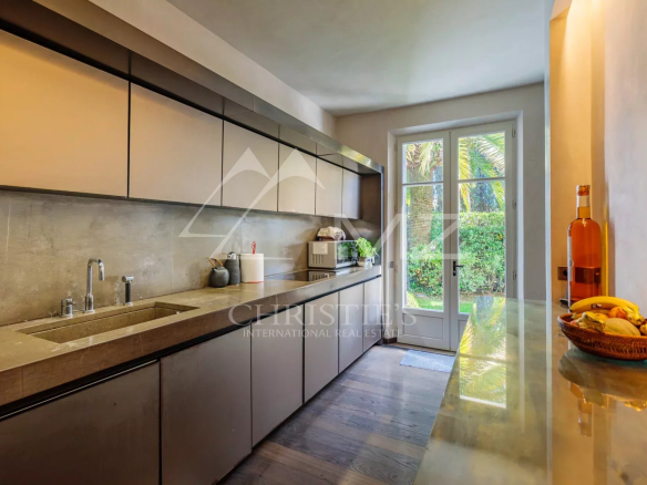 It comprises a magnificent living and dining room, a fully equipped kitchen, five bedrooms with en-suite bathrooms and toilets, including a master suite. The entire property opens onto a delightful landscaped garden with a heated swimming pool.