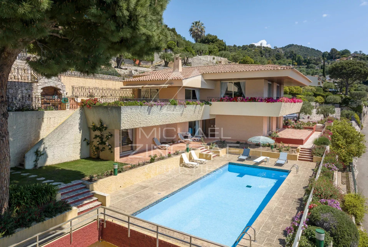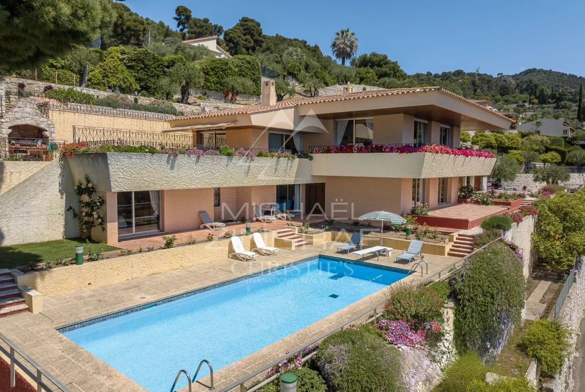Located in the most sought-after private sector in Villefranche-sur-Mer, this villa is distinguished by its contemporary style and generous volumes. Designed in the 1970s by a renowned architect, it retains remarkable modernity.