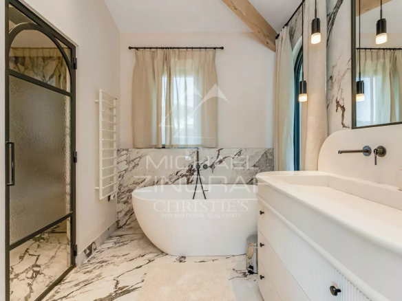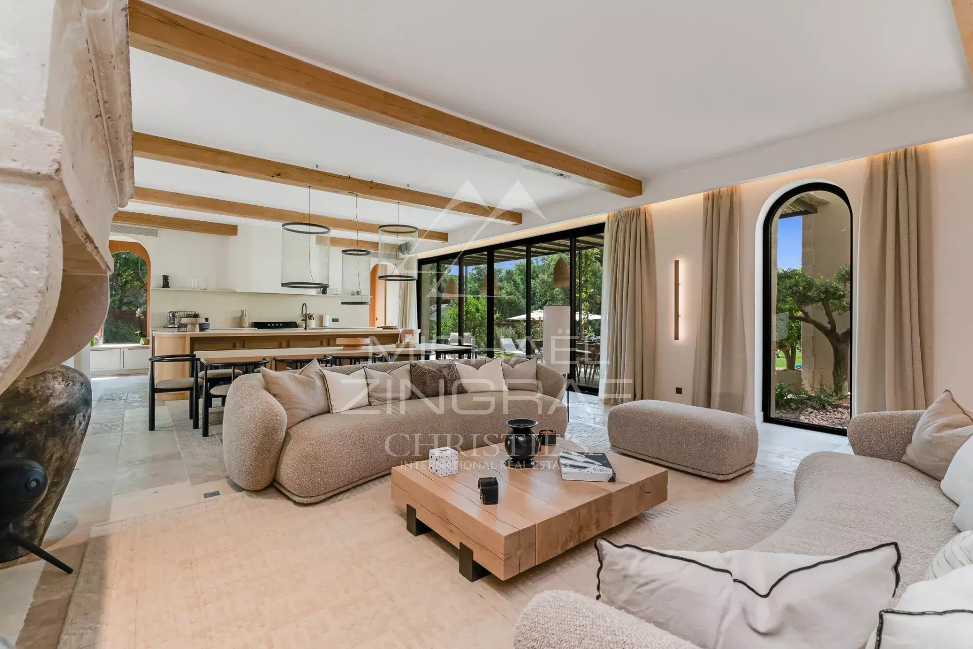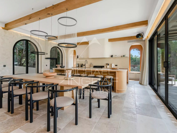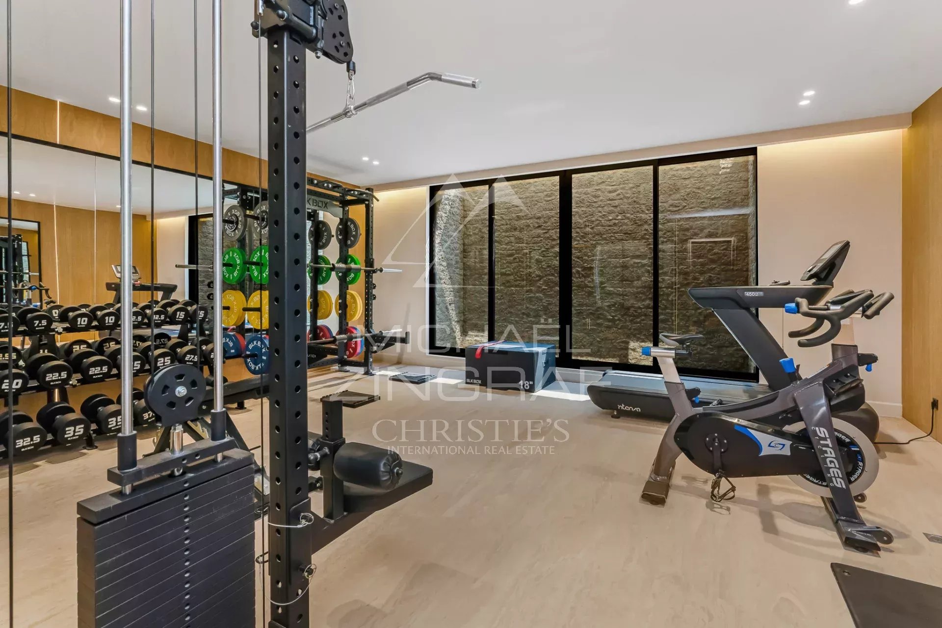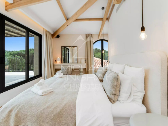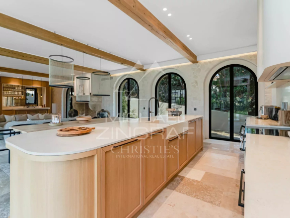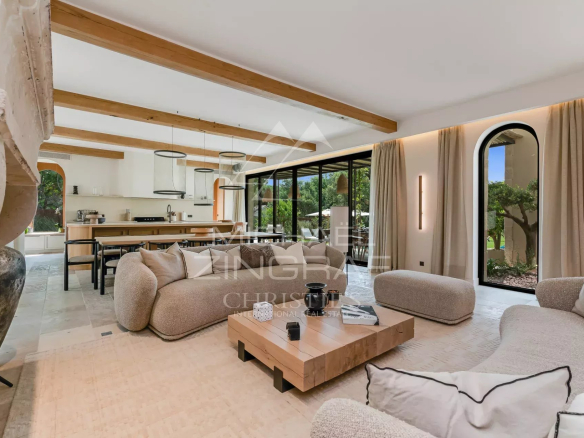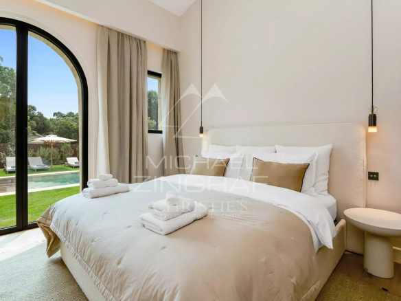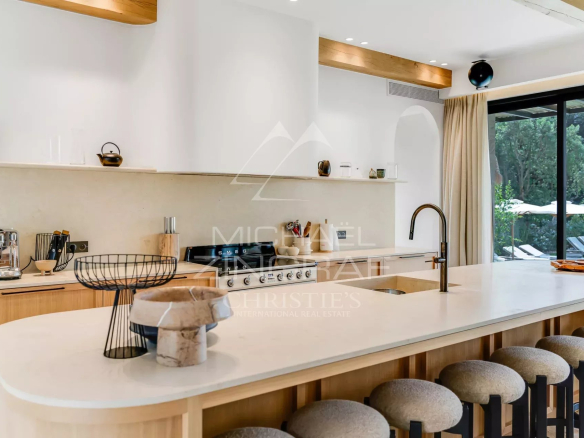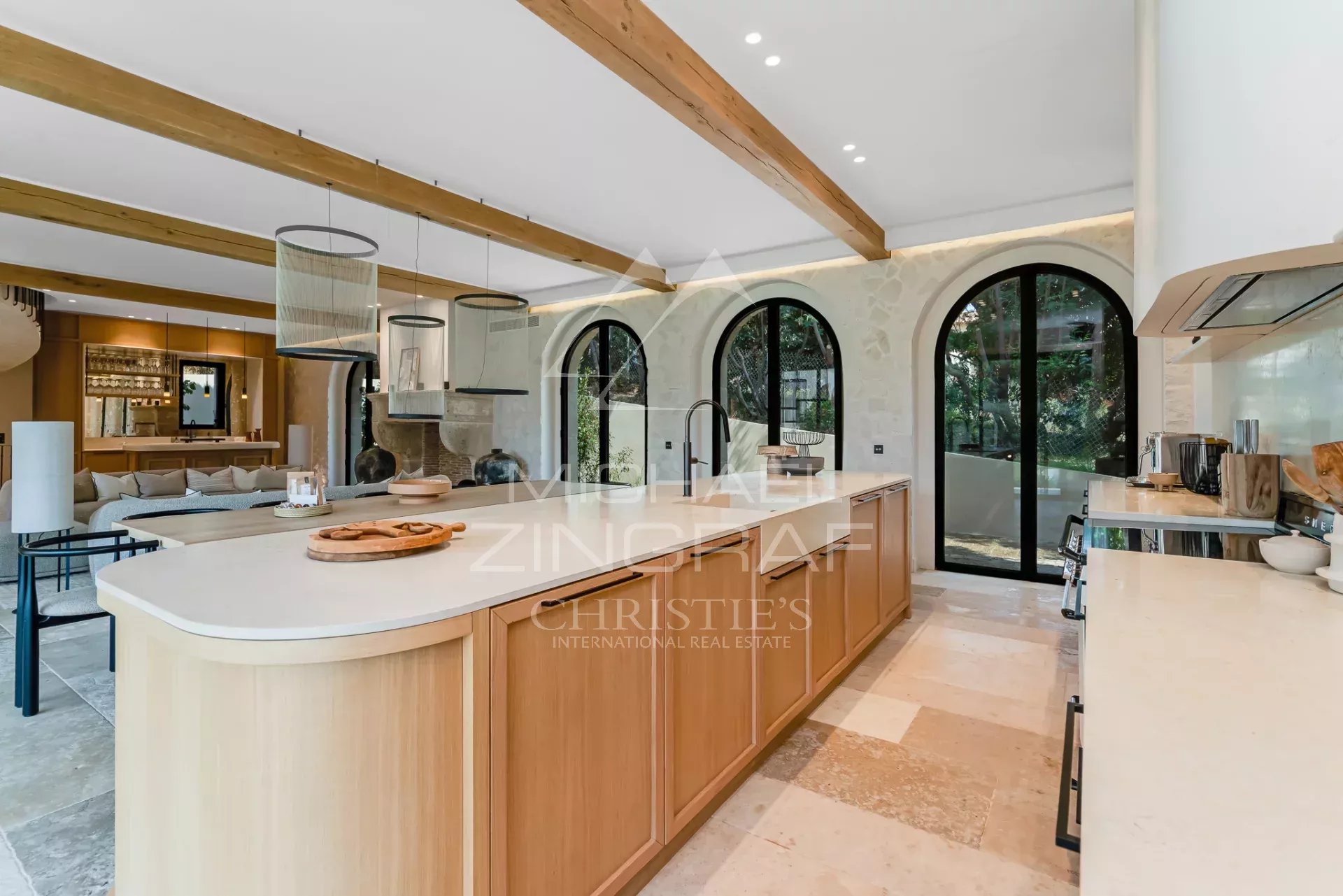 Ideally located a few steps from Pampelonne beaches and Club 55, within a private estate, this sublime new villa benefits from beautiful amenities and noble materials.
