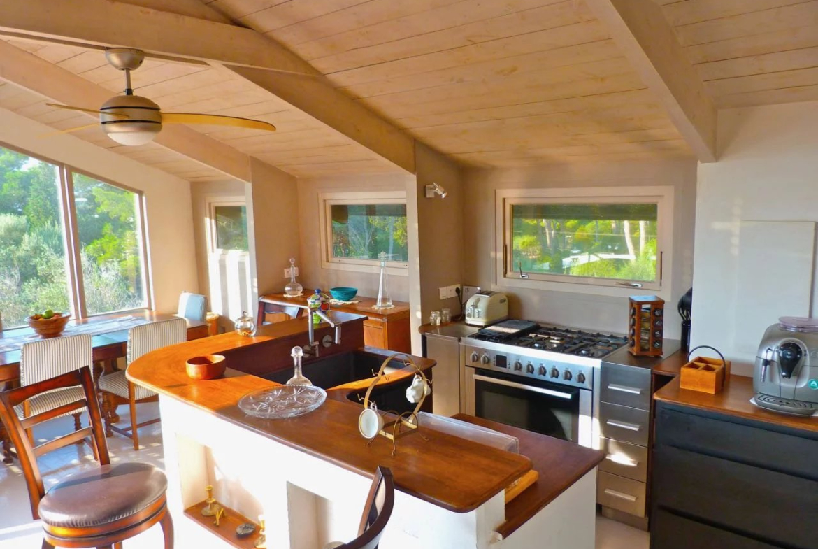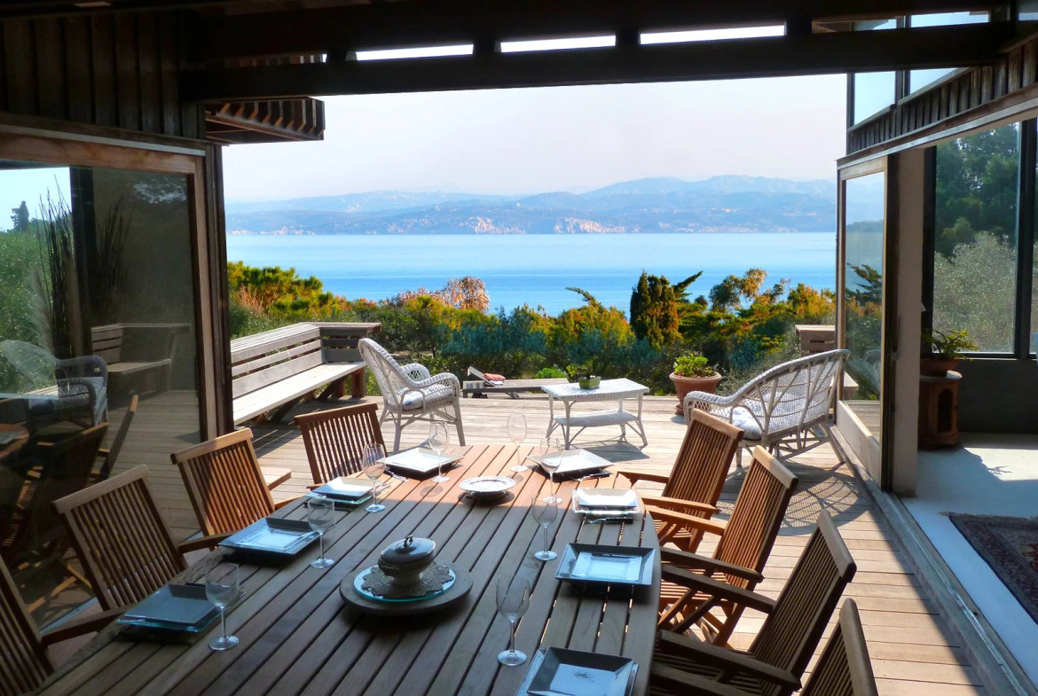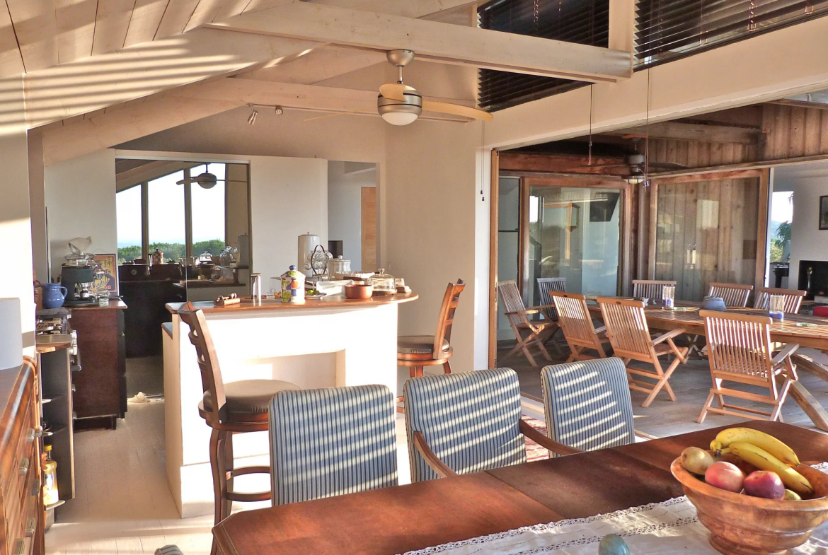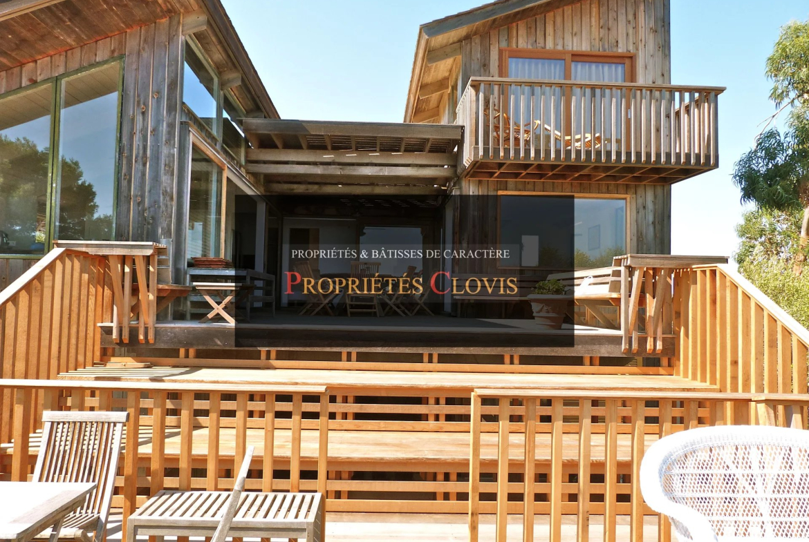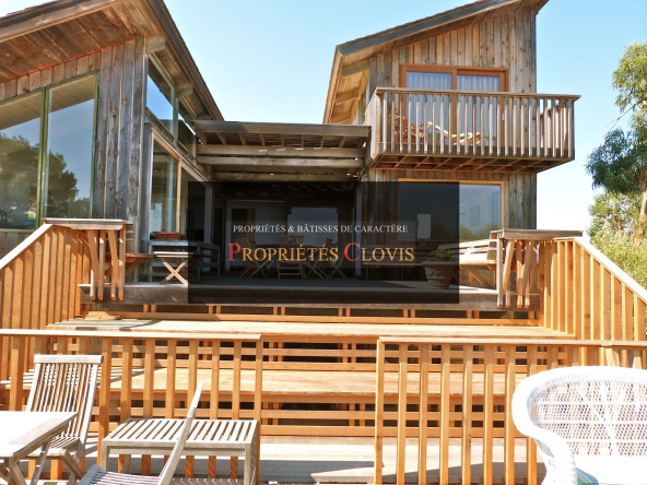 Built in the early 90s, the villa did not require any major work. In 2010, a redevelopment of the terraces and the interior was carried out, as well as a complete renovation of the roof. This house is therefore ready to be inhabited immediately, with the possibility of making cosmetic changes according to your tastes. Red-cedar cladding, very resistant, does not need to be sanded or painted and cleans easily, thus retaining its natural appearance.
