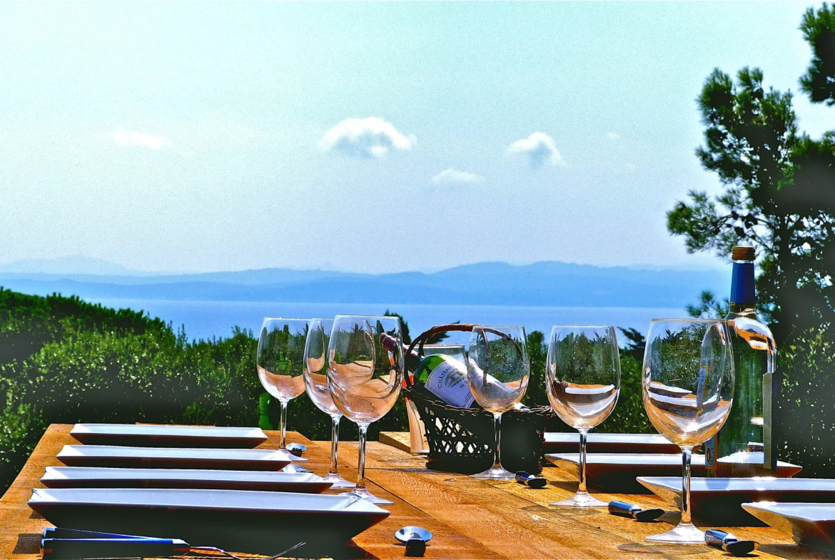One of the unique characteristics of the villa is its garden, carefully arranged to offer an atmosphere of peace and serenity. At the entrance, a laurel path leads you to a wooden bridge, built by the last sea carpenter from Bonifacio. The garden, which is on the old orchard of the Ciappili farm, is made up of olive trees, bougainvilliers, lentisques and mimosas, creating a real Mediterranean landscape.