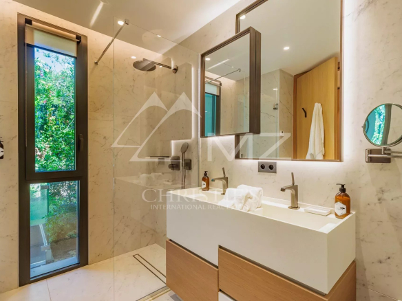 The villa has 3 levels; inside the villa, on the ground floor, you will find a bright and open space with access to the outside, a large living room with a fitted kitchen, 2 master bedrooms and 3 en suite bedrooms, each with its own bathroom