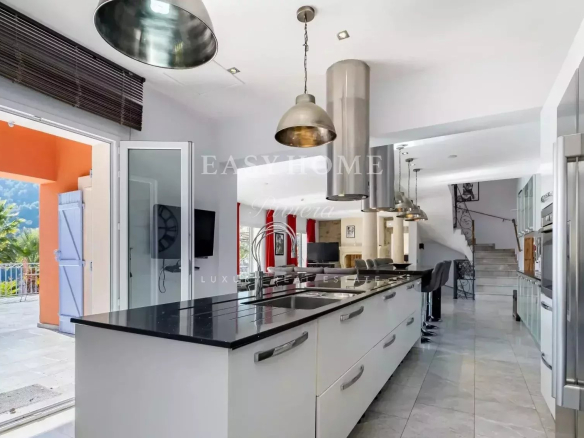 This villa, with 421 m² of living space, comprises a first apartment on two levels with a fitted kitchen, a large reception room, a master bedroom with a spa bathroom and dressing room.