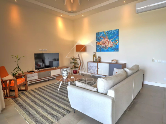 The breathtaking ocean view is a daily spectacle, enhanced by an ideal location where privacy is preserved, with no neighbors visible on the horizon. Built on a 1750 m² plot, the villa also benefits from additional garden areas for exclusive use, offering a lush and serene setting.