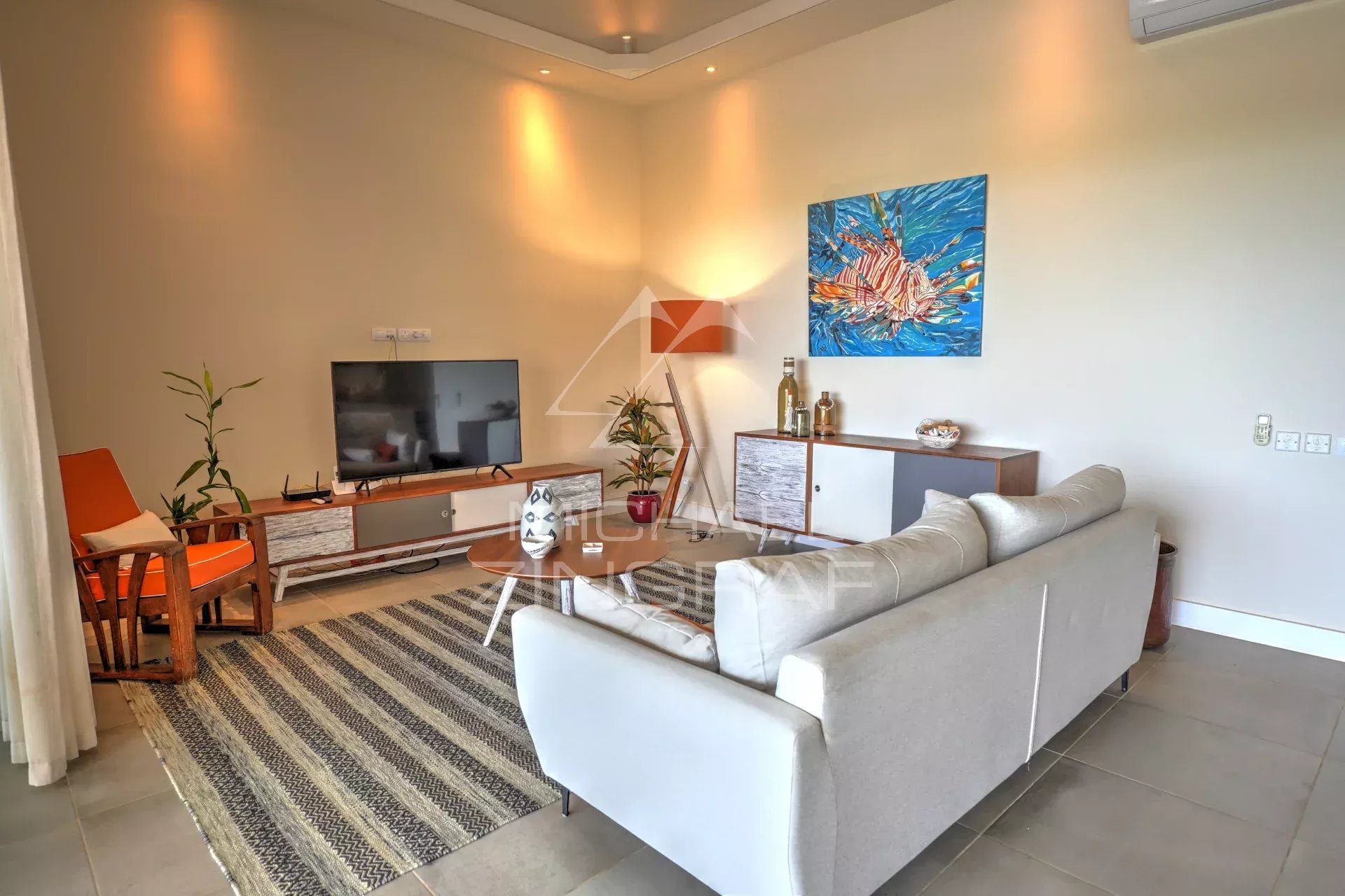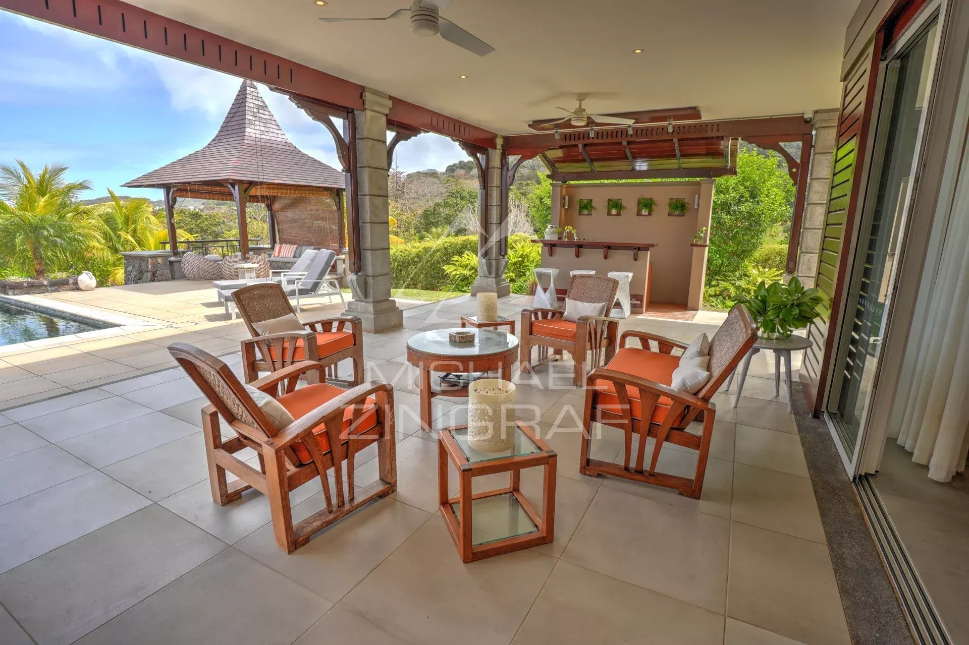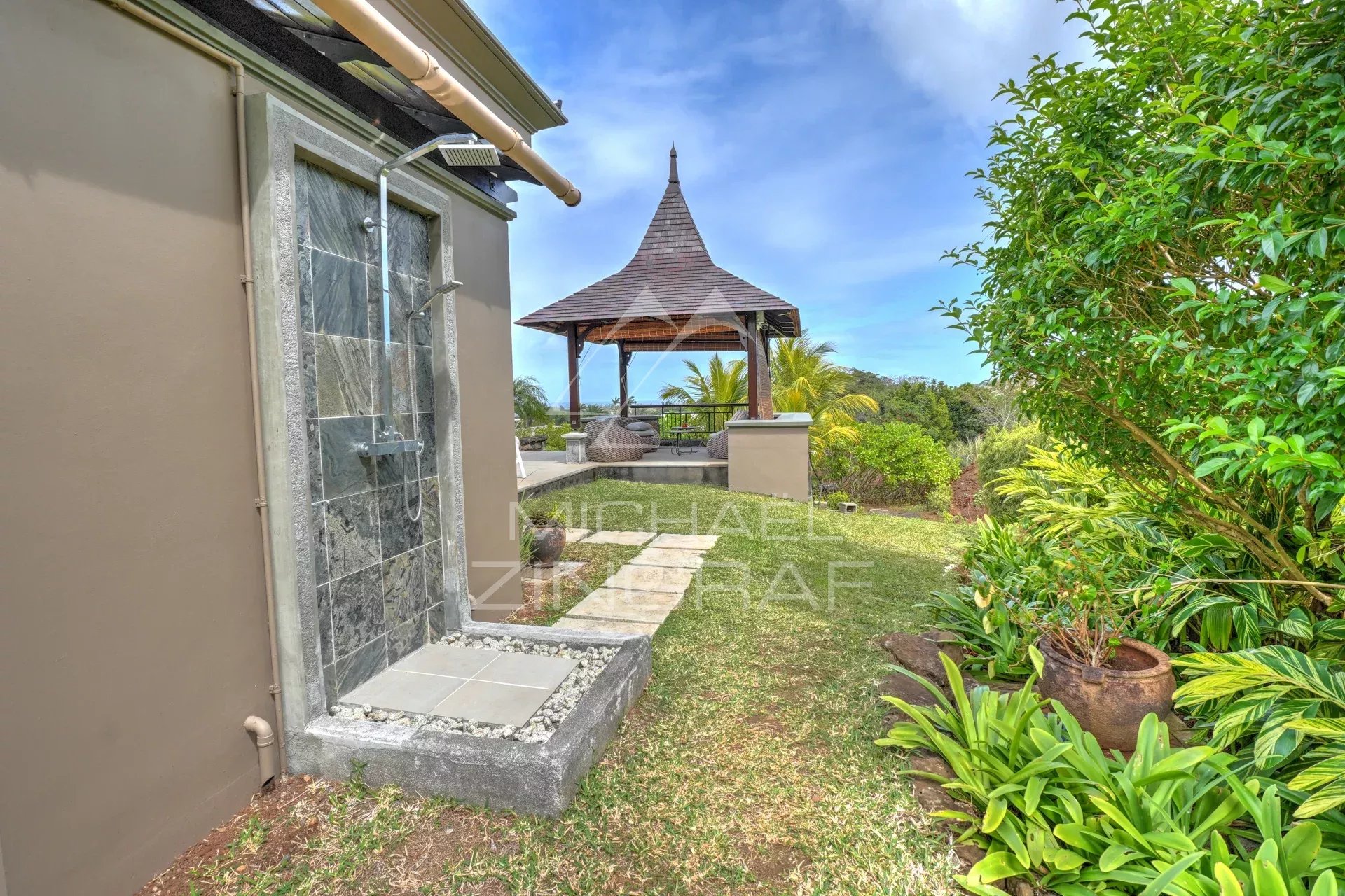 The four en-suite bedrooms are true sanctuaries of comfort, with the master bedroom opening onto an outdoor shower and bathtub, perfect for relaxing amidst nature. Each bedroom is equipped with centralized air conditioning, ensuring optimal comfort in every season.