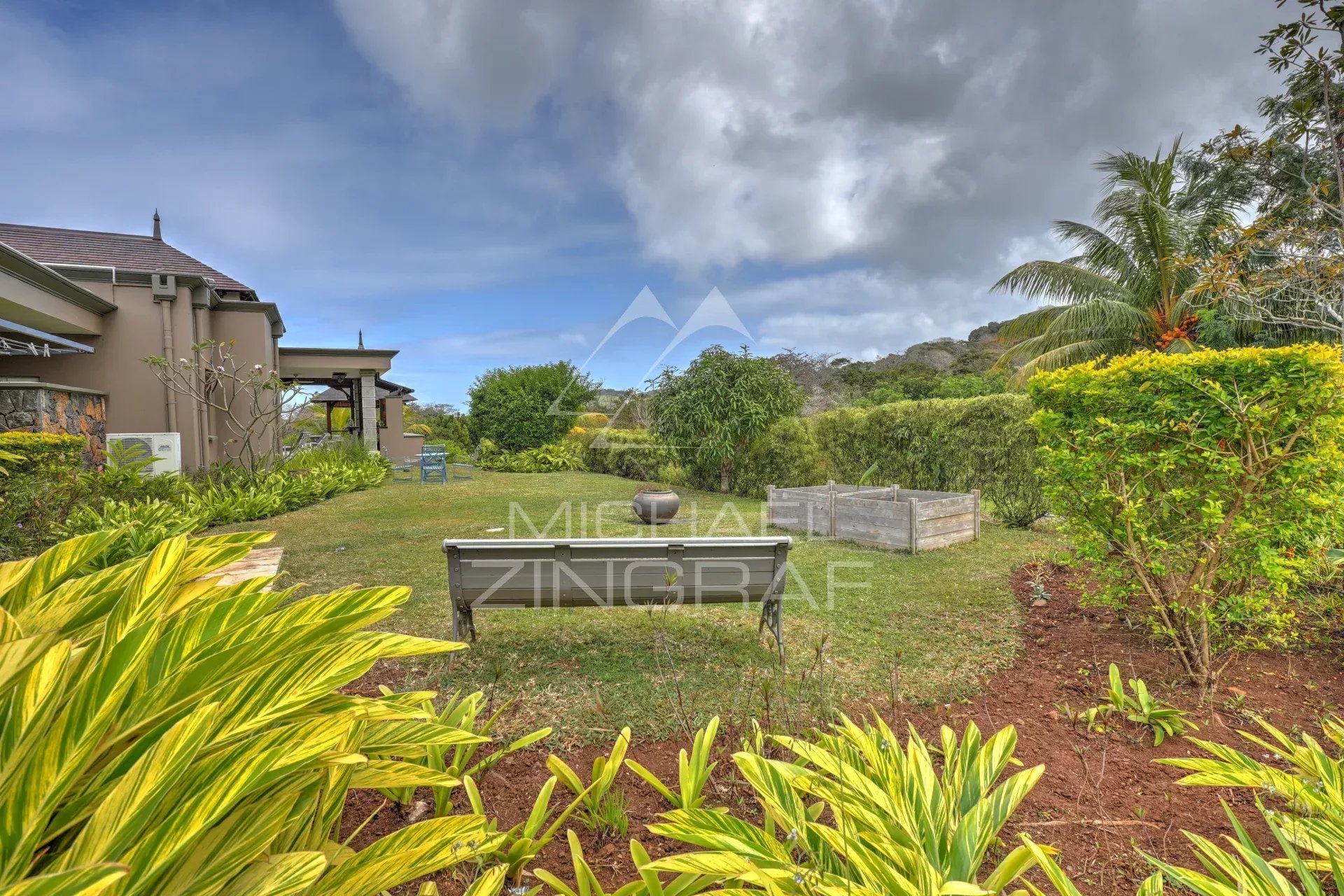 The landscaped garden and vegetable patch add a touch of tranquility to this exceptional residence.