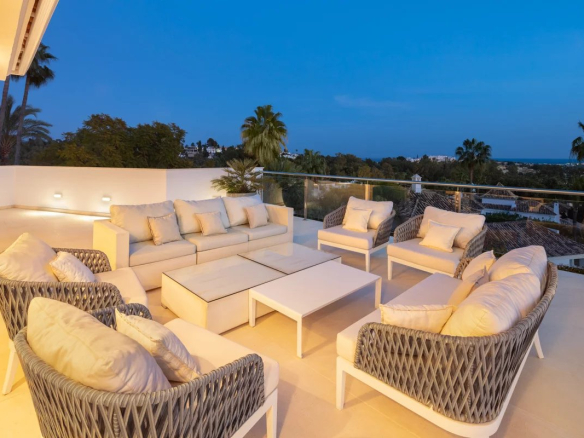 course and Puerto Banús to the south, and enjoys the evening sun to the west. The property