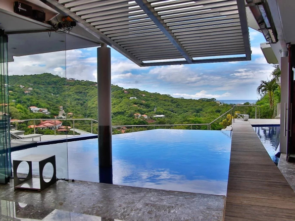 ✨ VILLA MALINCHE PALACE — PLAYA OCOTAL, GUANACASTE, COSTA RICA — Perched above the Pacific Ocean in Playa Ocotal, Guanacaste, Villa Malinche Palace is an exceptional 8-bedroom property that seamlessly blends modern design with first-class indoor-outdoor comfort, ideal for hosting large groups. The open-concept living spaces feature floor-to-ceiling glass walls offering panoramic ocean and mountain views. The infinity pool is accessed via a teak walkway. Multi-level terraces and private verandas accessible from most bedrooms complete a spectacular outdoor setting. The guest house includes a full kitchen, living room, and dining area. The garden suite is wheelchair accessible. The honeymoon suite boasts a glass wall with direct bay views. Playa Flamingo and its pristine beaches are just minutes away.