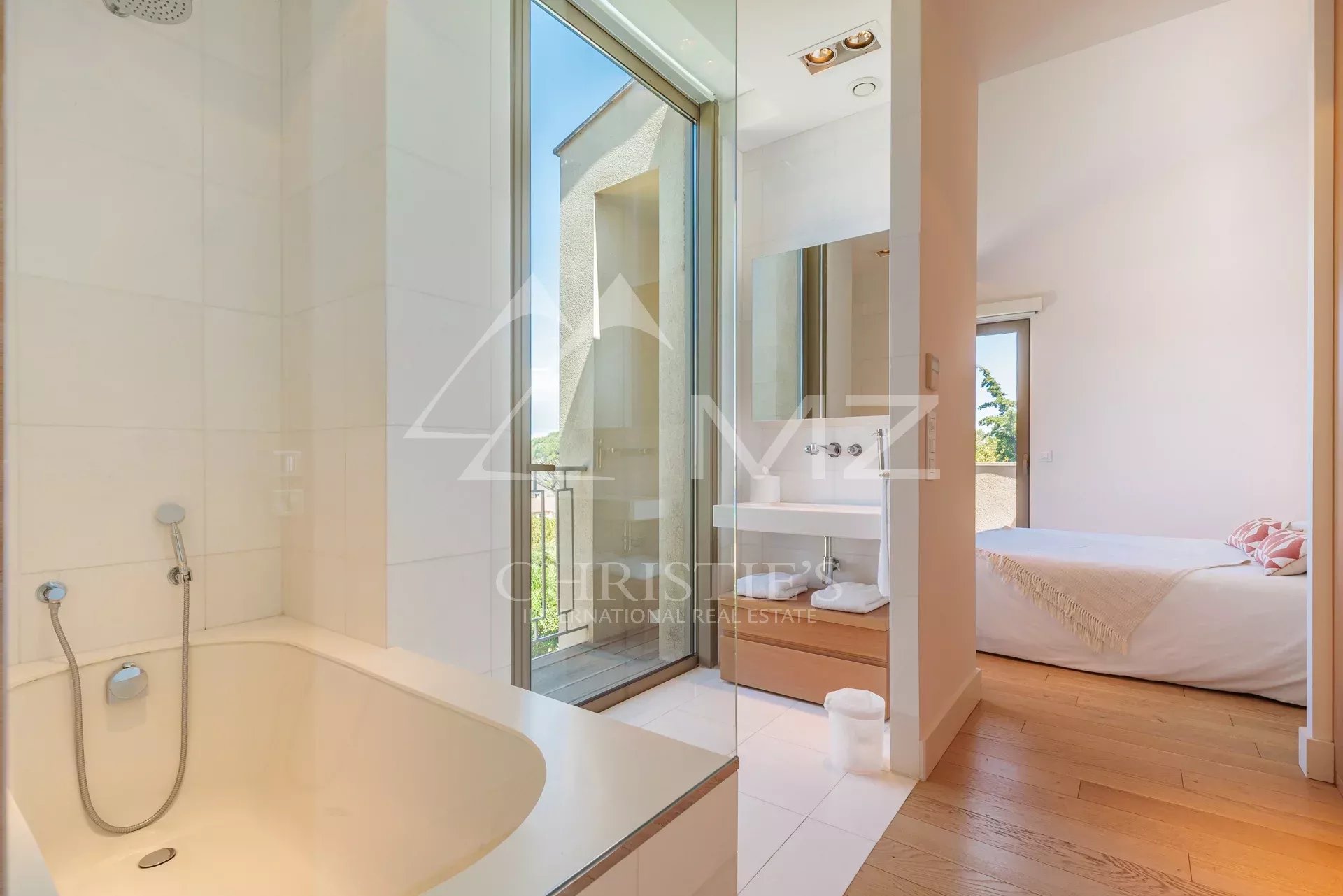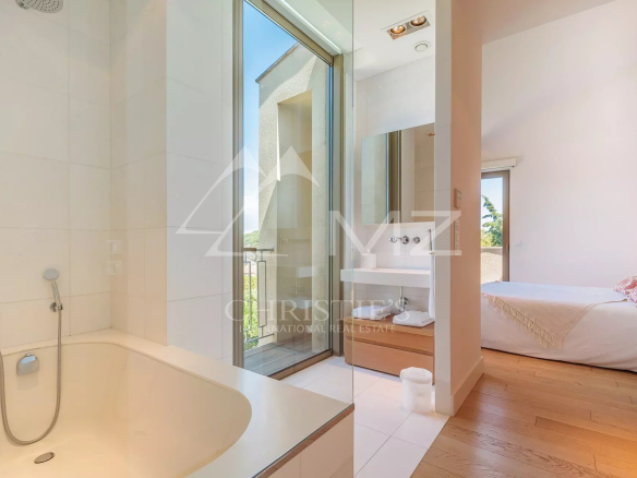 Ideally located a few steps from the famous Place des Lices and the center of Saint-Tropez, this contemporary-style property offers a perfectly landscaped park of approximately 1,200m2.