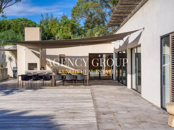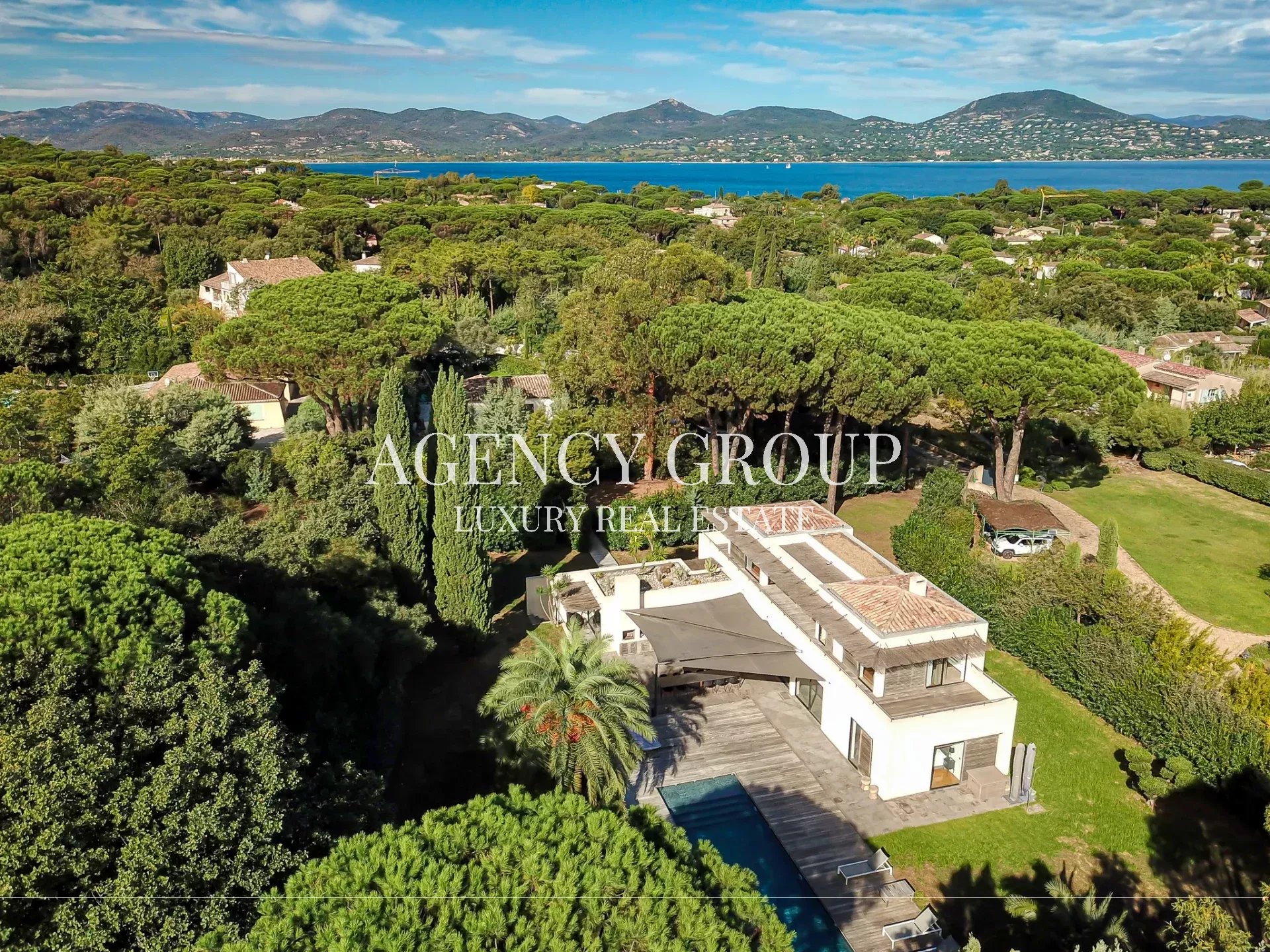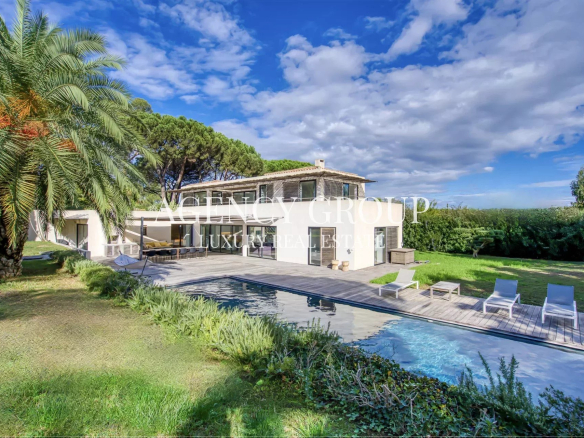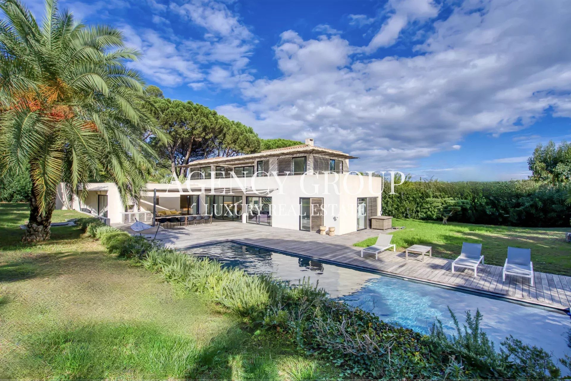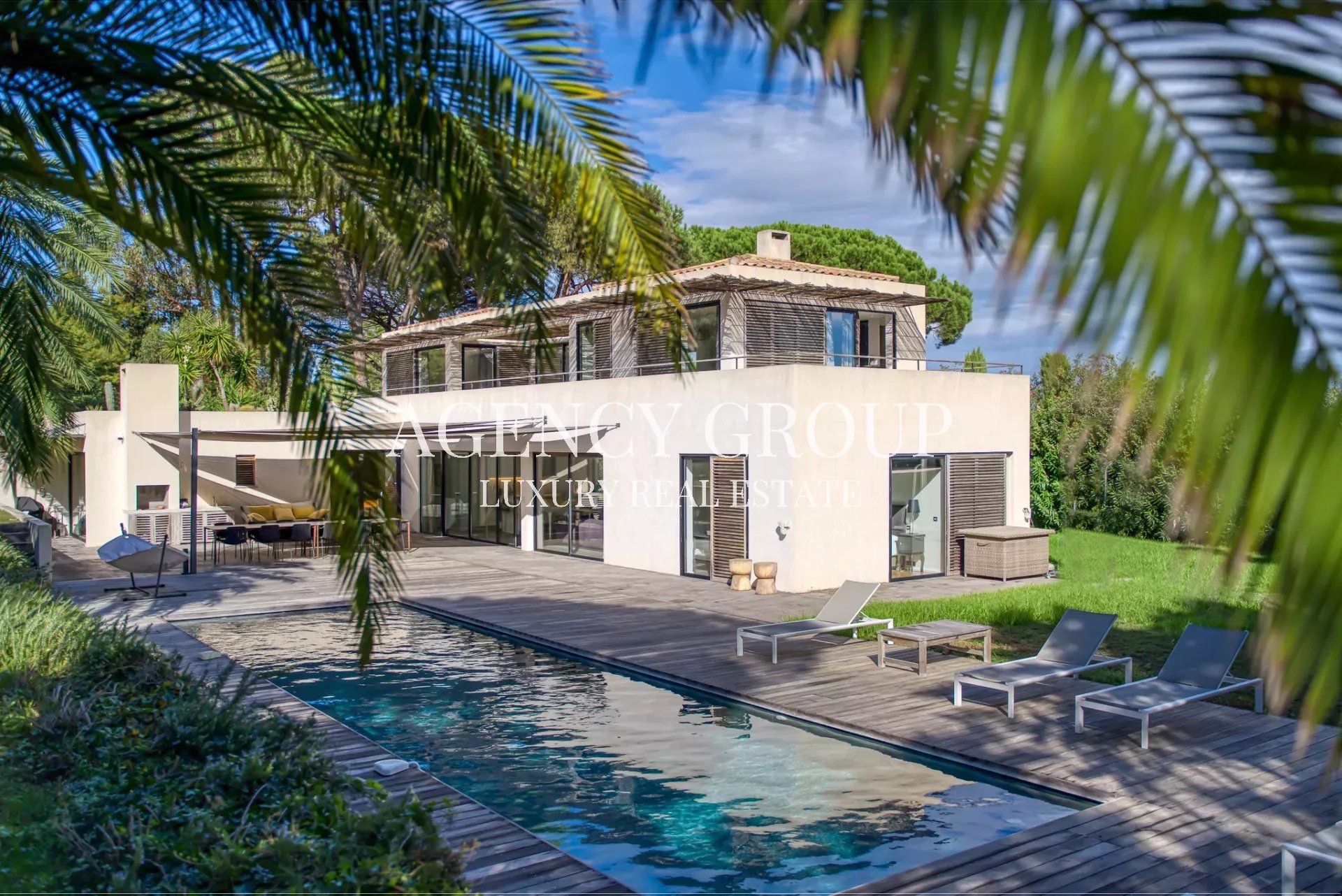Located a few minutes from the port of Saint-Tropez in a quiet area, close to the Route des Plages and the beaches of Pampelonne, this magnificent contemporary villa of 250m2 is situated in the heart of a landscaped plot of 3000m2