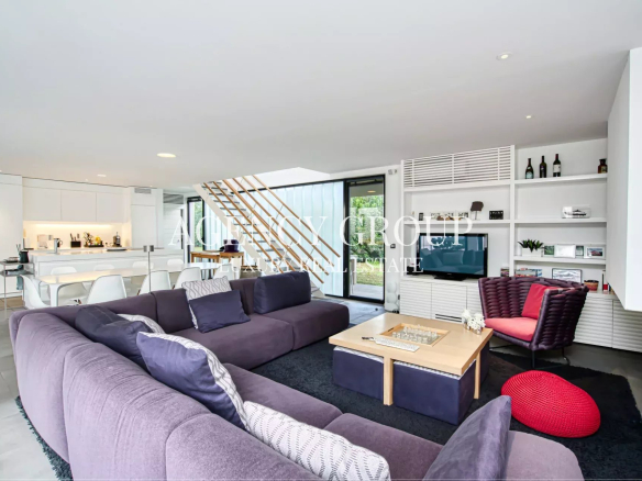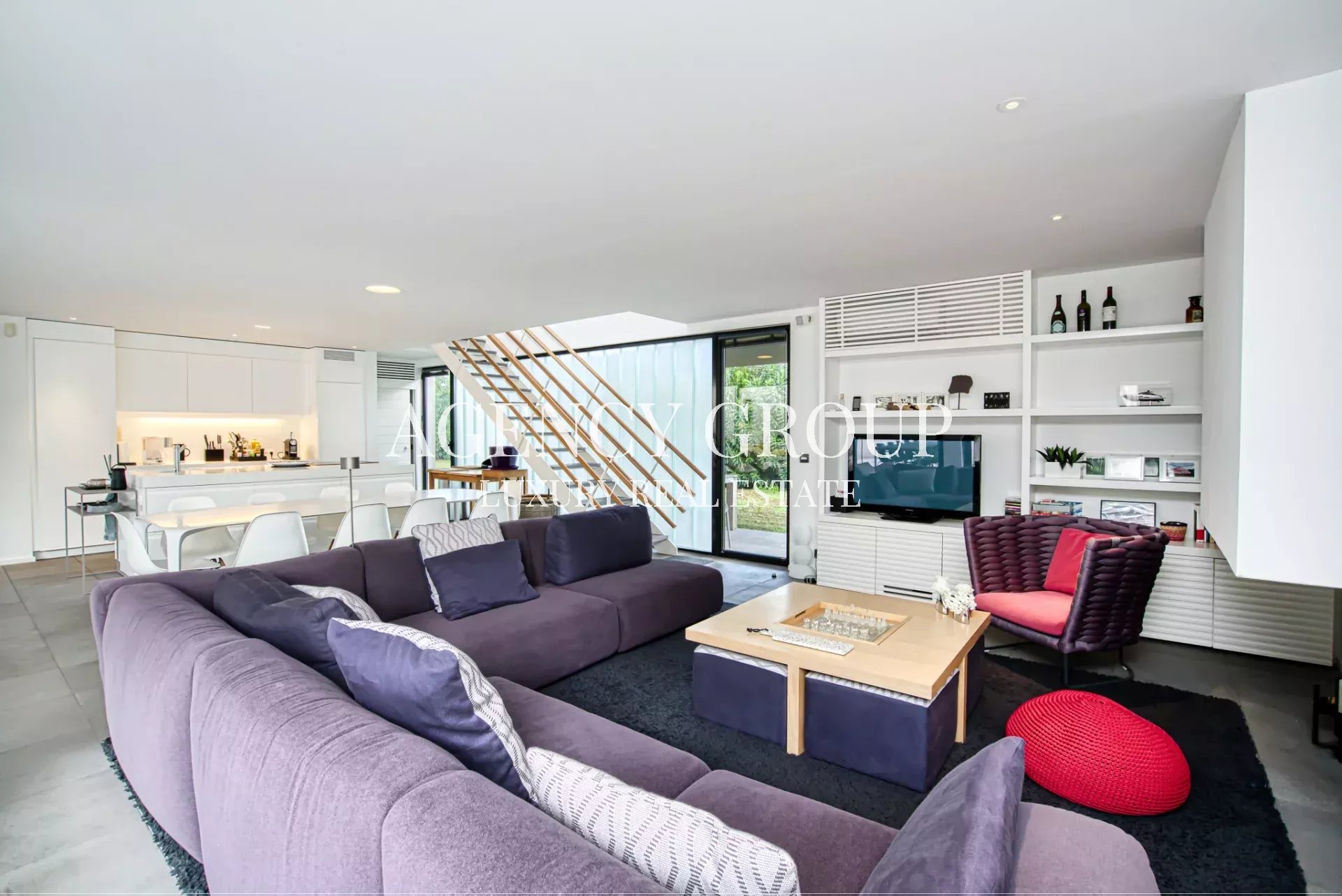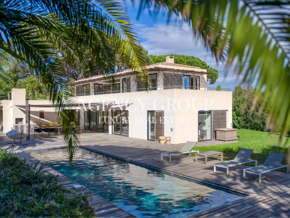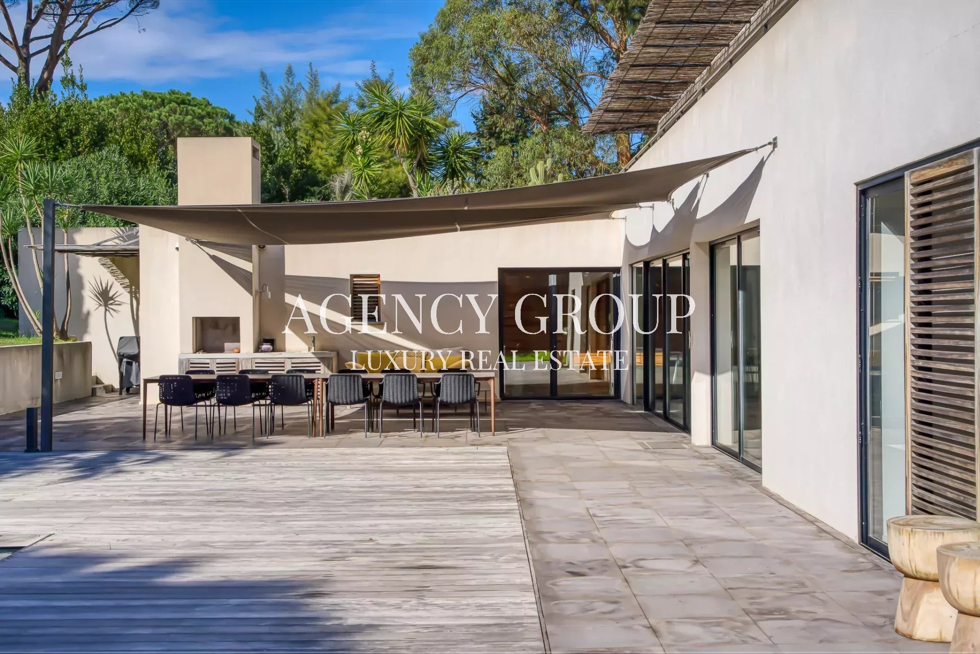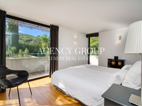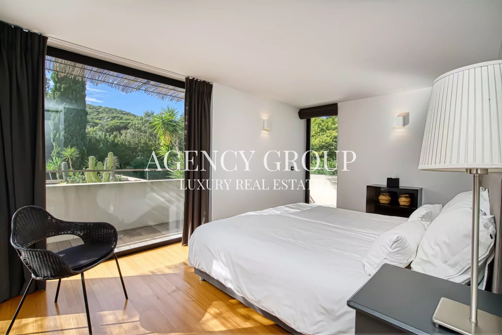 Located a few minutes from the port of Saint-Tropez in a quiet area, close to the Route des Plages and the beaches of Pampelonne, this magnificent contemporary villa of 250m2 is situated in the heart of a landscaped plot of 3000m2