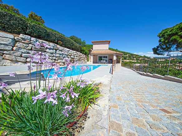 Located in a peaceful setting on the heights of the secure Beauvallon Bartole estate in Grimaud,