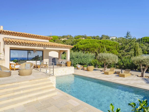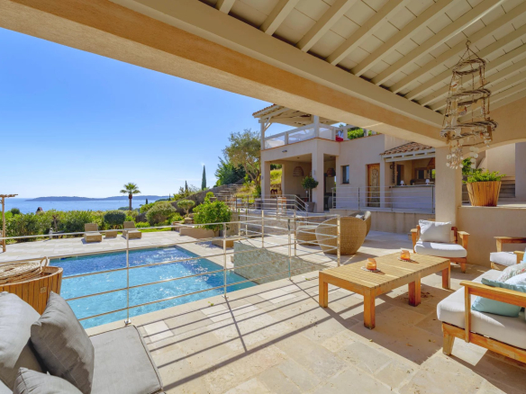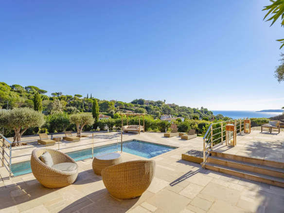 Discover the epitome of luxury and comfort on the French Riviera. Nestled within a secure estate, this exceptional villa boasts an elegant and timeless design, along with top-quality amenities. It offers a privileged living environment, both peaceful and within easy reach of the town center and beaches, with stunning sea views.