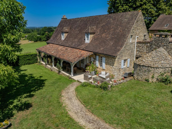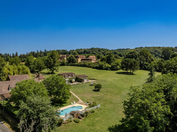 Vallée DORDOGNE- Propriété en pierre composée de deux maisons avec piscine sur un hectare de terrain