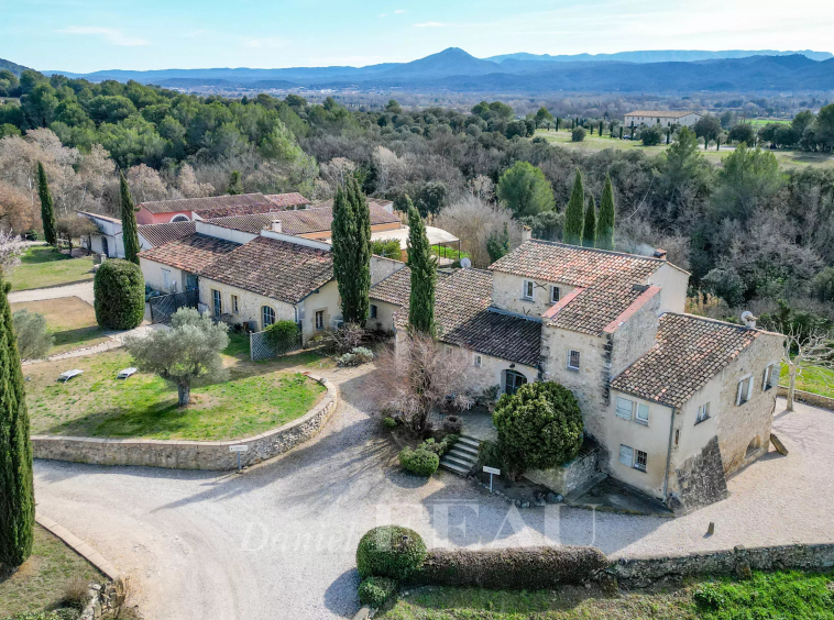 Mas provençal avec 15 chambres, oliveraie et vue panoramique sur les collines.
