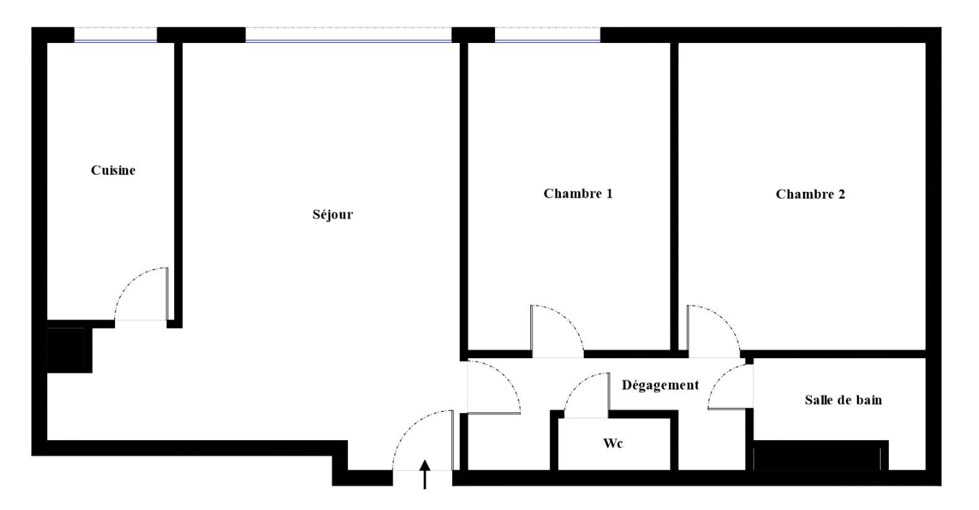 Il se compose d’un grand séjour de 23m2, d’une cuisine indépendante ouvrable, de 2 chambres, d’une salle de bain et d’un WC indépendant ainsi que de nombreux rangements.