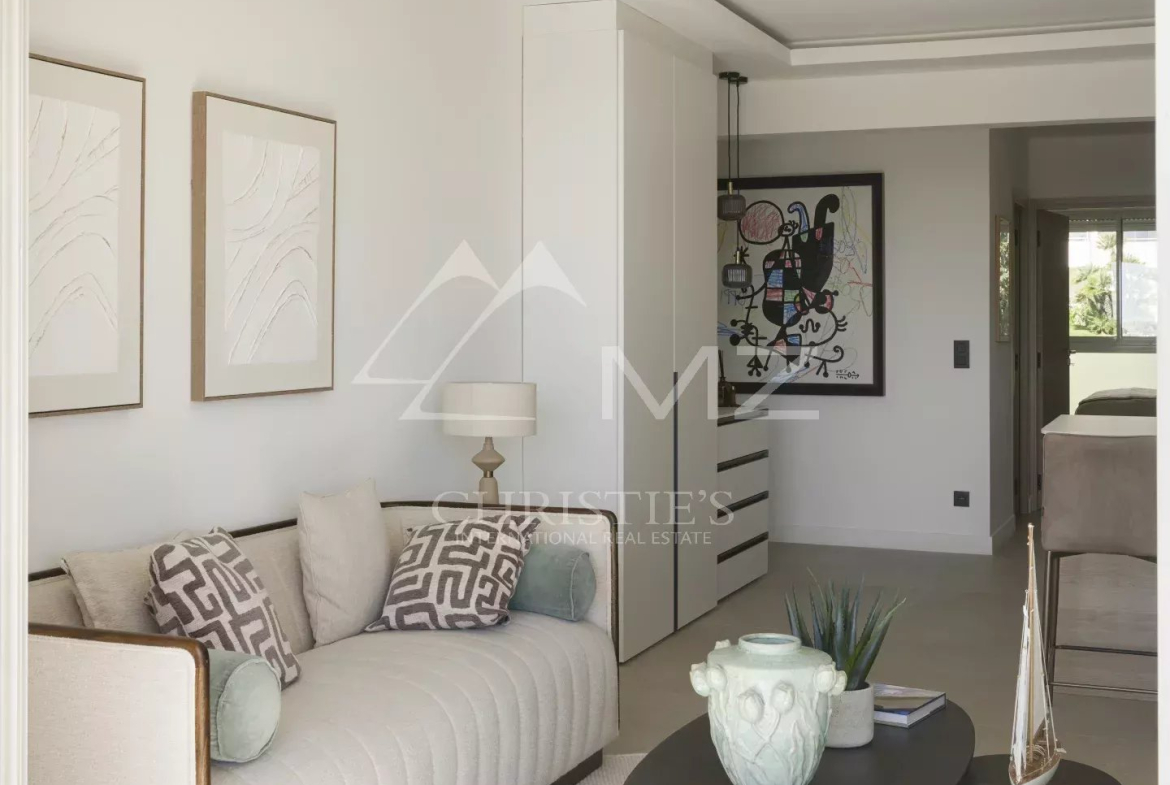 La cuisine ouverte, moderne et entièrement équipée, s’intègre harmonieusement dans l’espace de vie. L’appartement dispose de deux chambres, chacune avec salle d’eau privative, alliant confort et modernité dans un esprit luxe. Les matériaux de qualité utilisés dans les finitions témoignent du soin apporté à chaque détail.