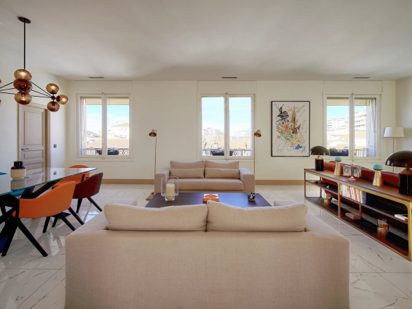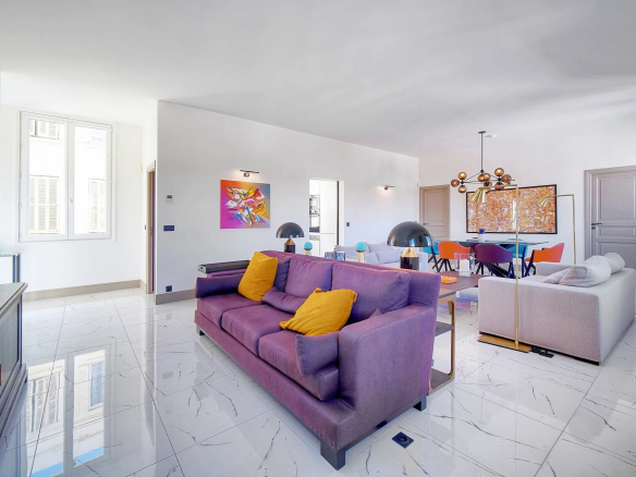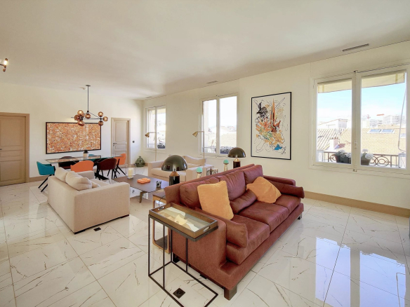 Situé au sein d’un immeuble Bourgeois au cœur de Cannes, face au Palais des Festivals tout en bénéficiant d’un calme absolu, découvrez ce magnifique appartement 4 pièces entièrement rénové par un architecte de renom avec des prestations haut de gamme.