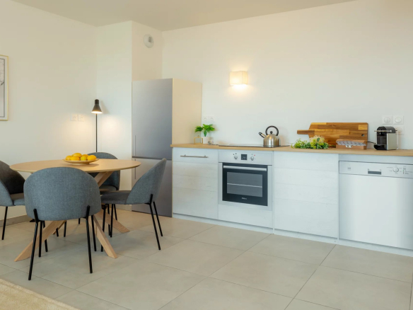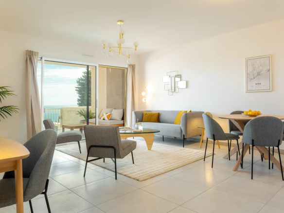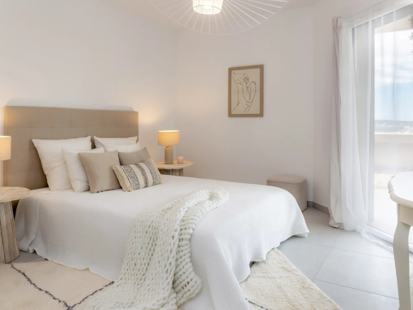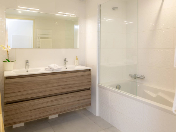 Bénéficiez d’un confort de vie optimal avec ce bien d’exception composé d’une cuisine équipée ouverte sur le séjour spacieux et lumineux donnant accès à un jardin privatif de 100 m² où vous pourrez profiter d’une vue panoramique sur la Mer et les collines, vous y accéderez également depuis toutes les pièces principales de l’appartement.