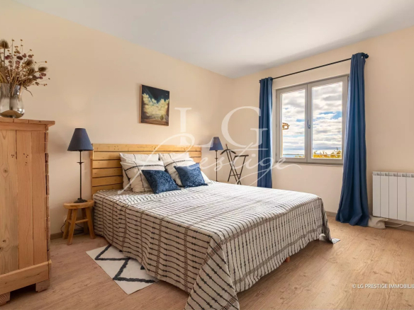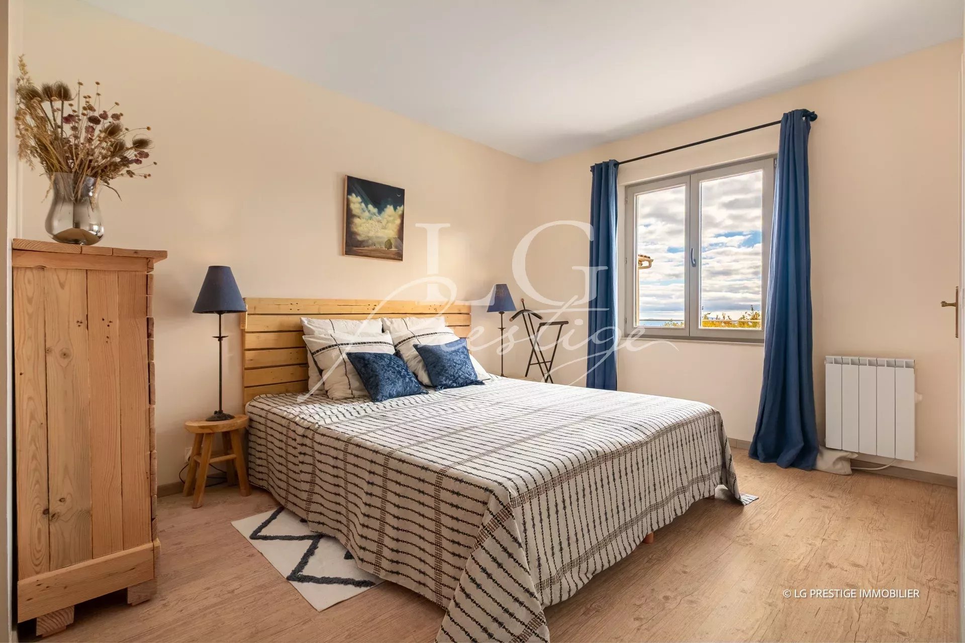 Édifiée sur un terrain de plus de 4 000 m², cette villa récente, baignée de lumière et parfaitement entretenue, offre de beaux espaces de vie ouverts sur l’extérieur. Vous profiterez également d’une piscine à débordement (10×5), bordée d’une vaste plage en travertin, offrant un véritable espace de détente ainsi qu’une magnifique vue dégagée sur la verdure jusqu’à la mer.