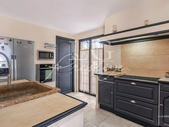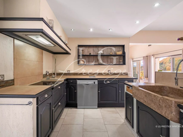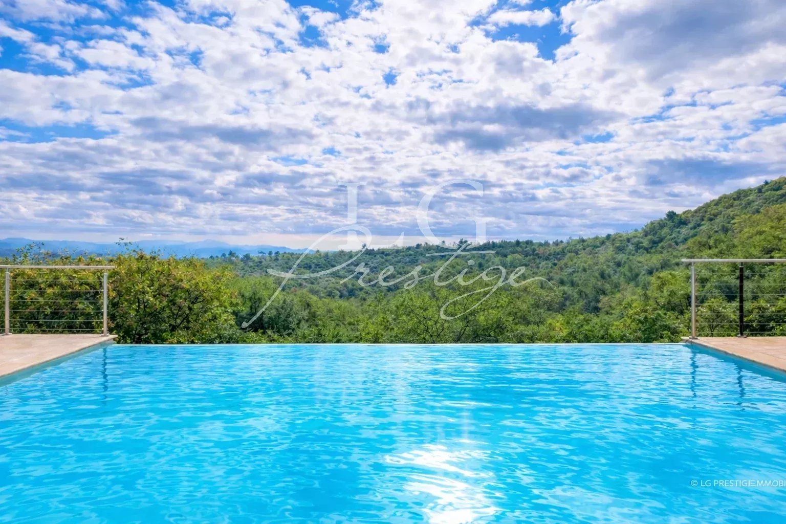 La propriété dispose également d’un beau garage avec porte automatisée, d’une grande cave en sous-sol, ainsi que d’un portail motorisé. À moins d’une heure de l’aéroport de Nice et des plages, cette maison combine confort moderne, prestations de qualité et cadre de vie privilégié.