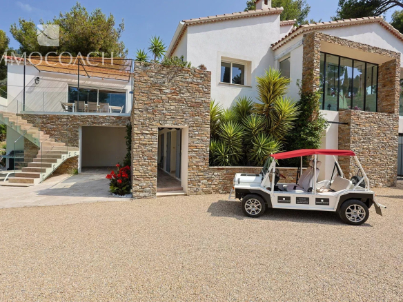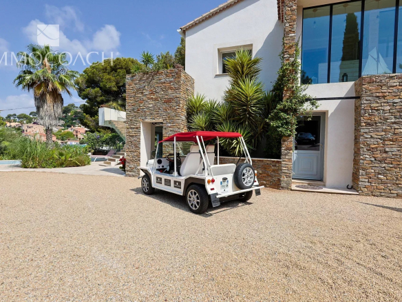 Plusieurs places de parking, une grande remise et une piscine viennent compléter les prestations grand standing de cette propriété à Carqueiranne.