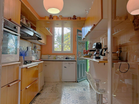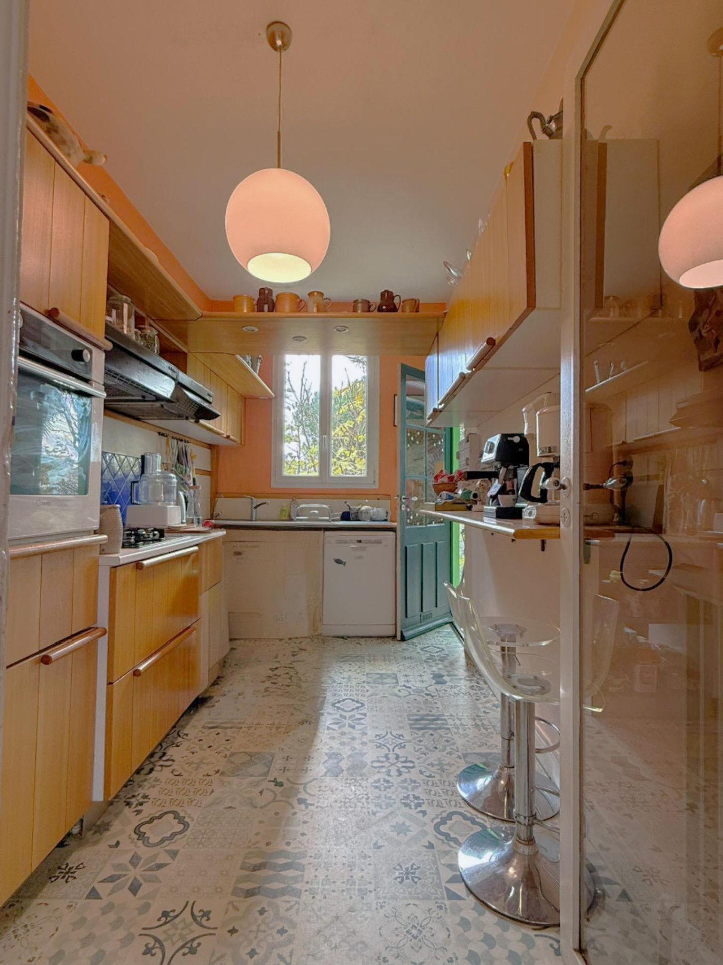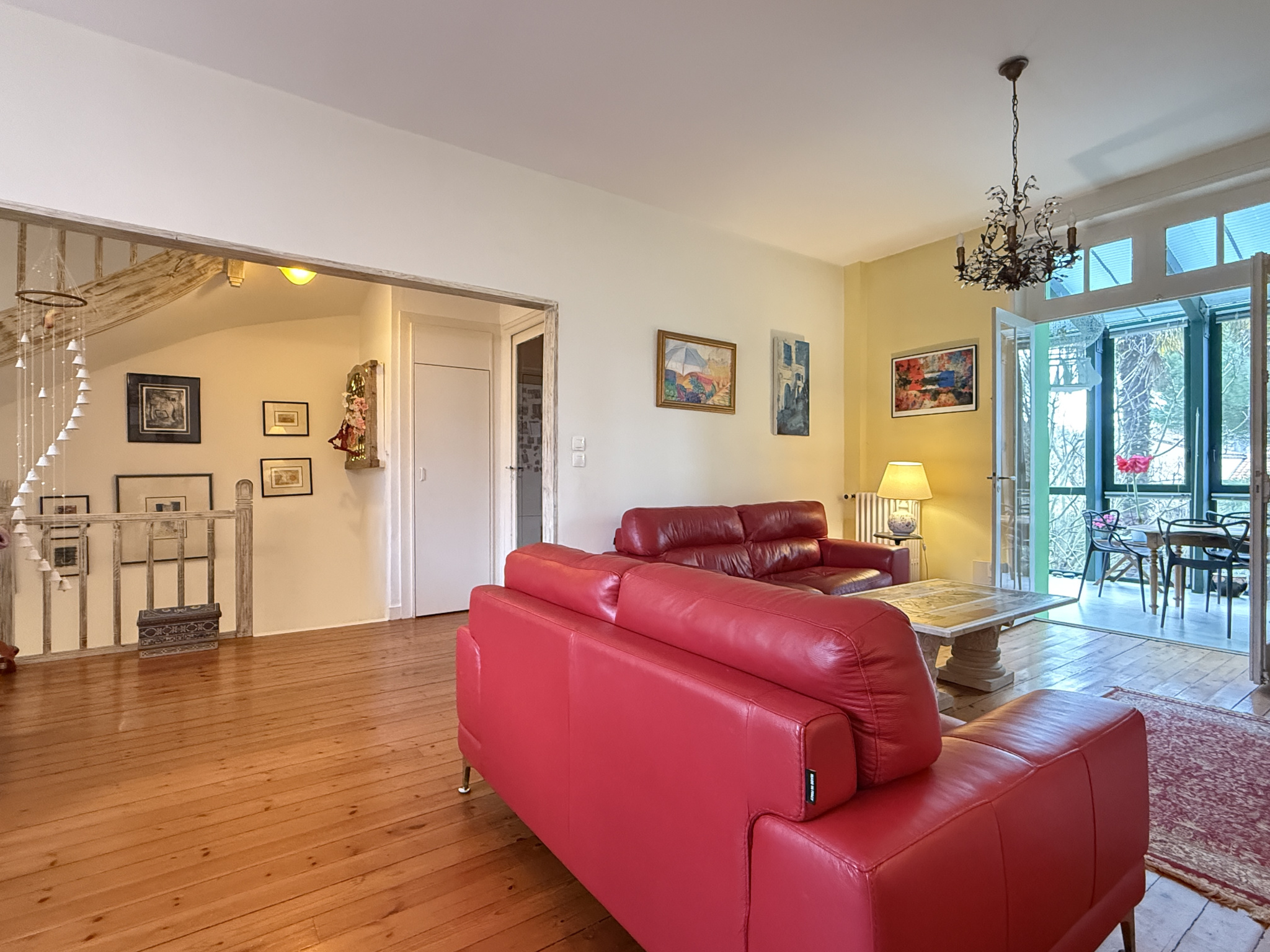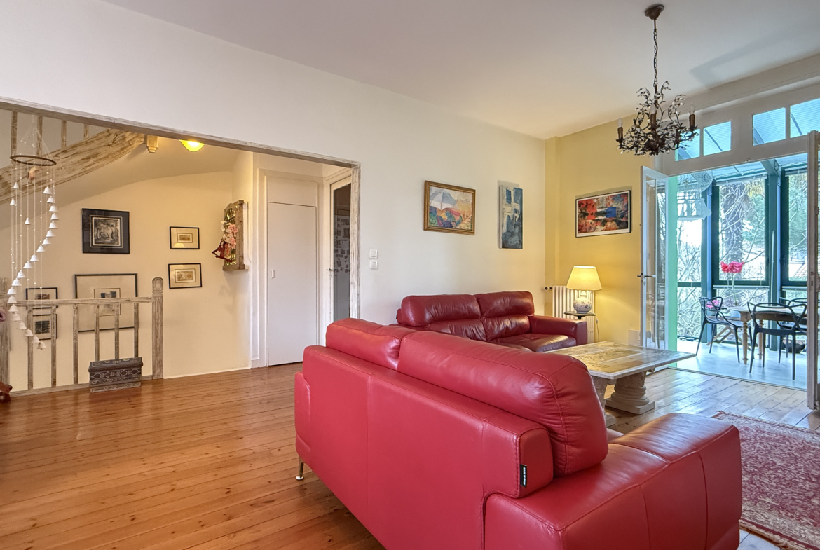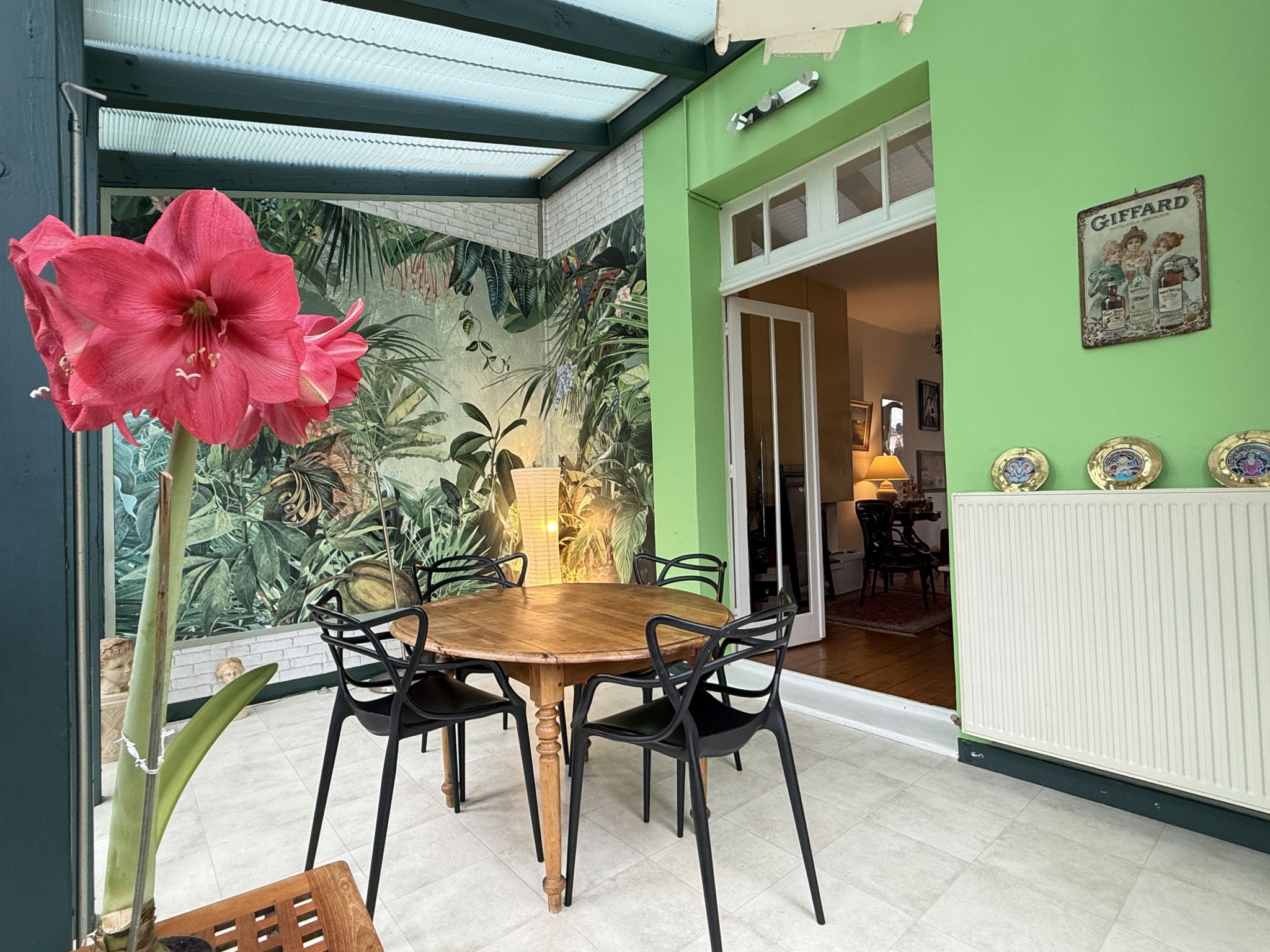 Au premier étage, la maison dévoile une belle pièce de vie lumineuse, prolongée par une véranda exposée plein sud, ainsi qu’une cuisine indépendante.