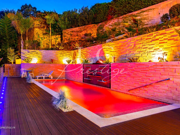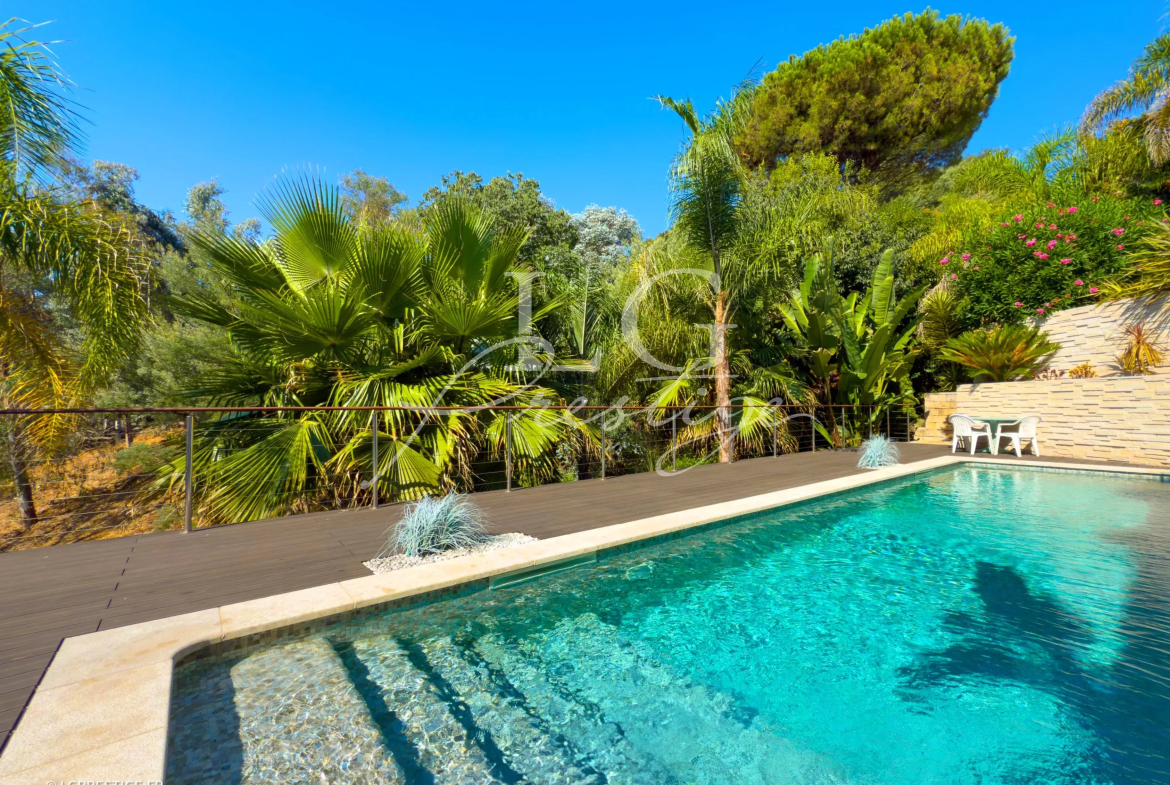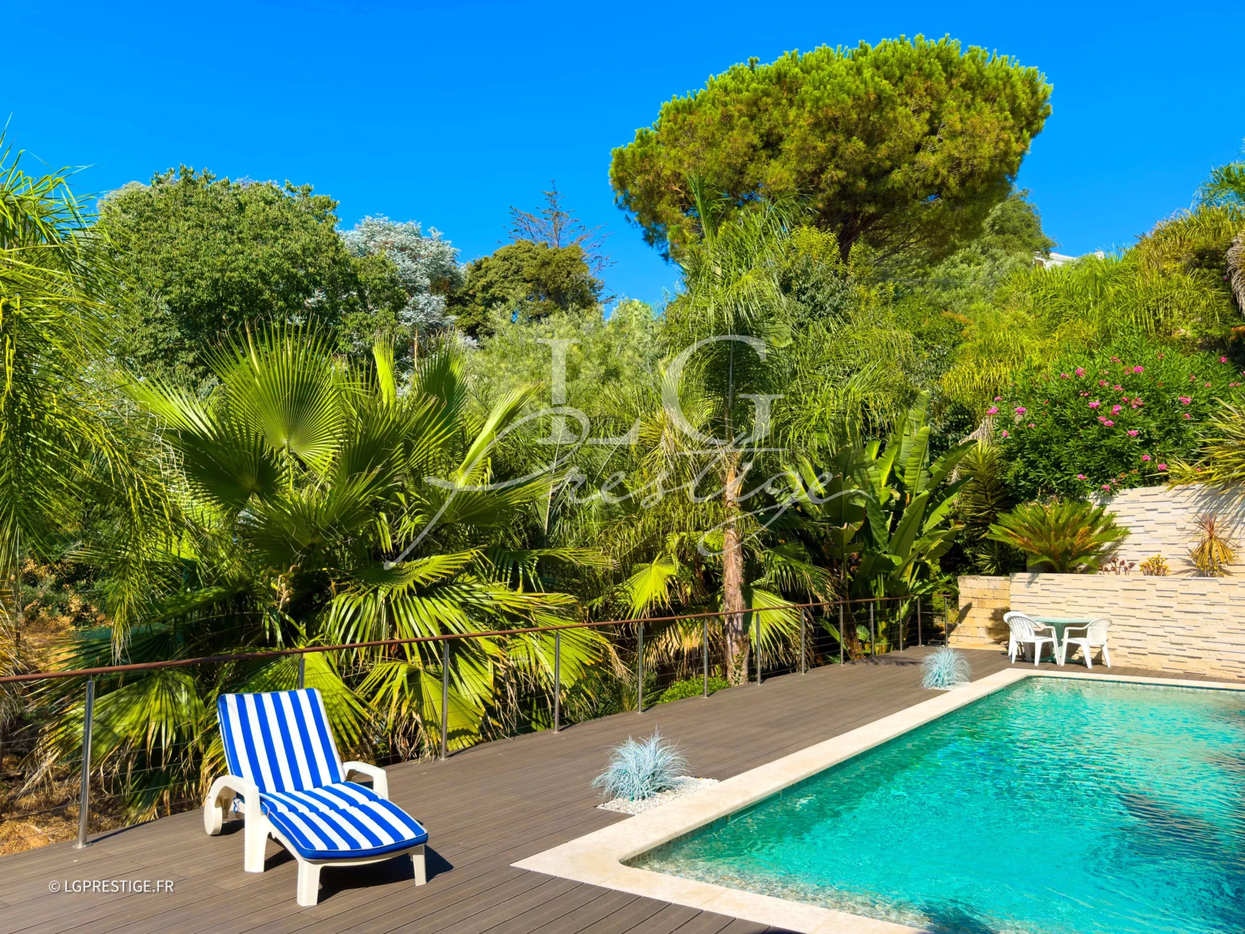 EXCLUSIVITÉ dans votre agence LG PRESTIGE IMMOBILIER de Mandelieu-La-Napoule – Maison de style contemporain sur terrain paysagé avec piscine chauffée bénéficiant d’une vue verdure sans vis-à-vis.