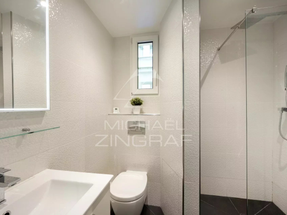 Au premier étage par ascenseur, au calme absolu sur cour, il comporte un salon avec sa cuisine toute équipée ouverte, une grande chambre au calme et une salle de douche avec des toilettes.