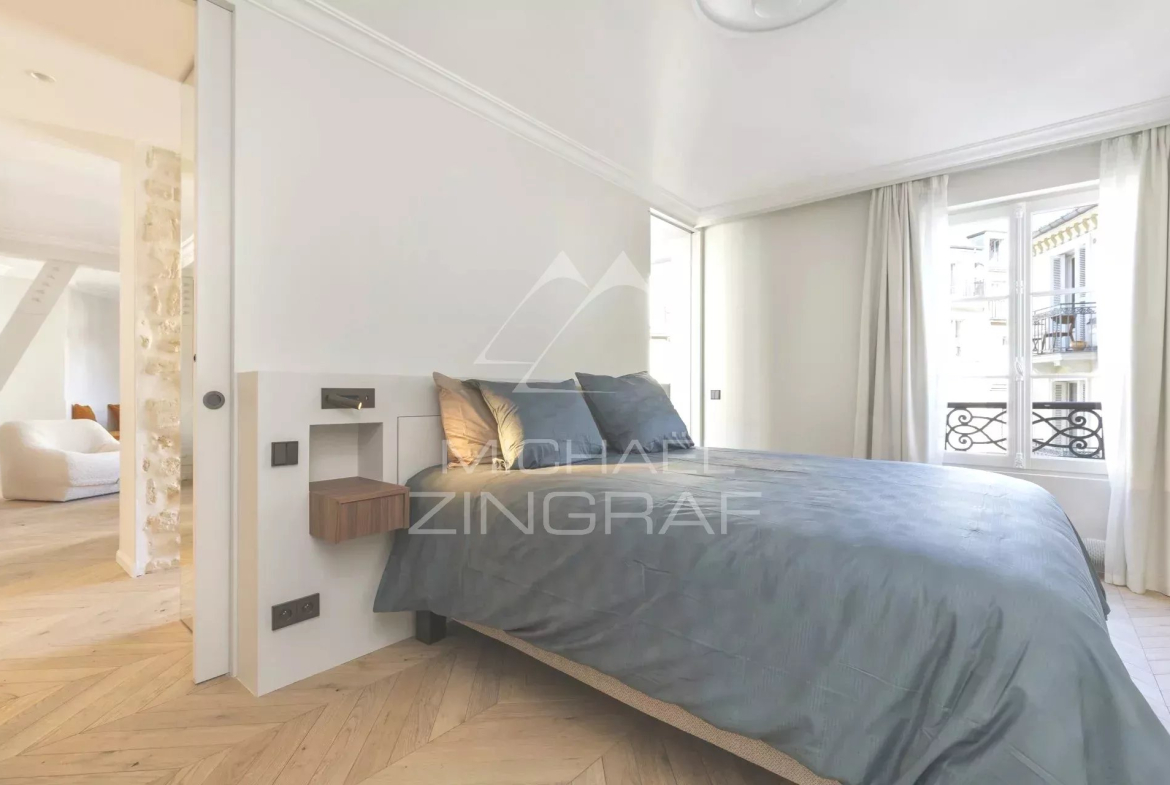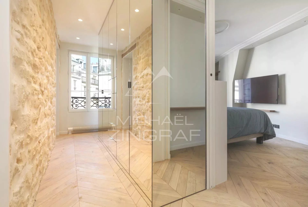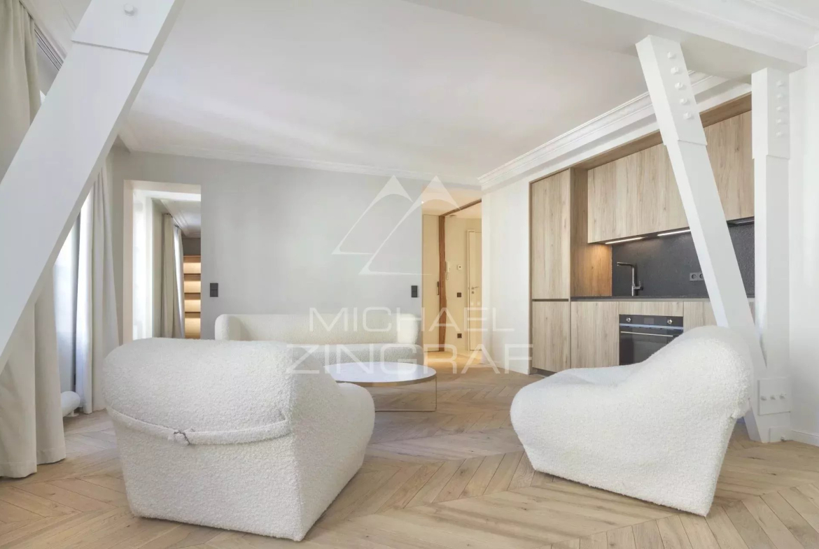Appartement de 62m2, entièrement refait à neuf et vendu meublé, comprenant, une entrée avec rangements, une grande pièce de réception avec salon, salle à manger et cuisine US toute équipée, une grande chambre avec coin bureau, salle de bains, toilettes.