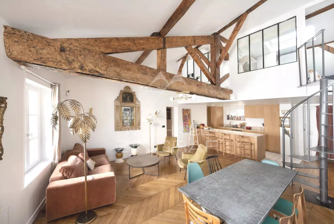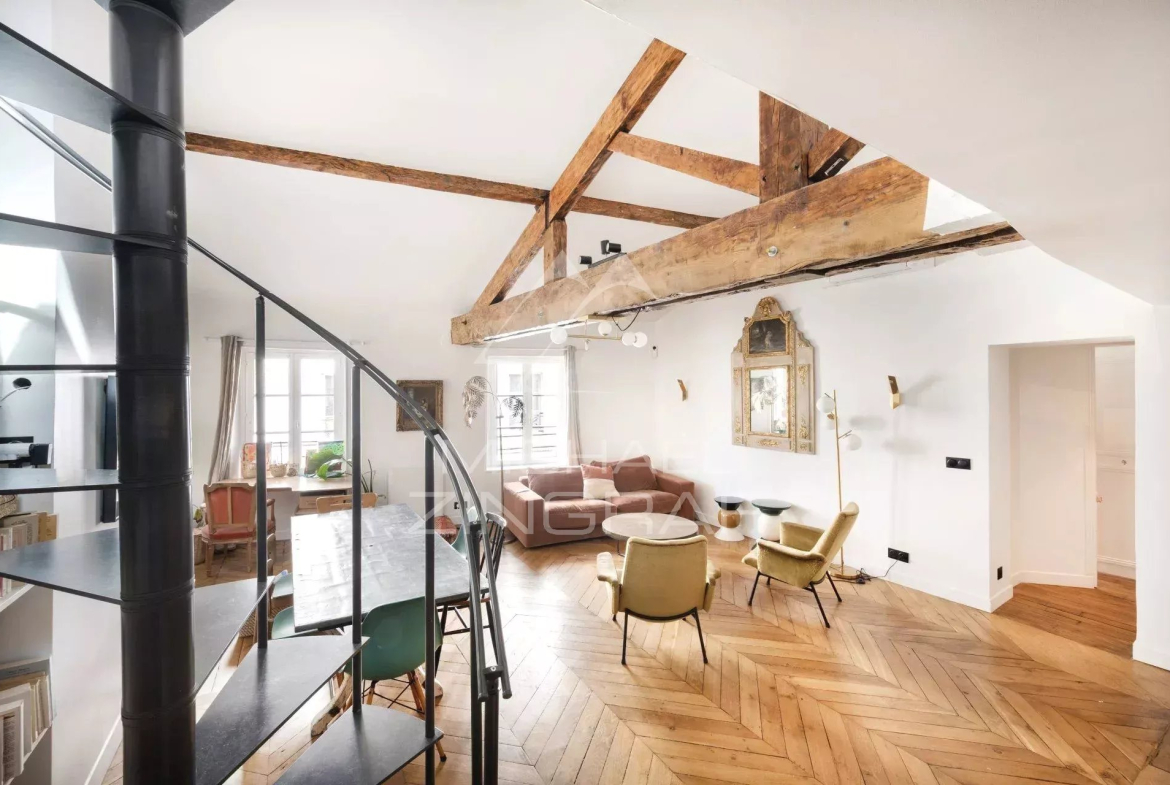 Situé rue de Babylone, idéalement placé entre le Bon Marché, La Pagode et les Invalides, appartement en duplex avec un esprit maison bénéficiant de beaucoup de charme et de chaleur, l’ensemble est en très bon état. Le bien fait 148 m² au sol (125,24 m² Loi Carrez).
