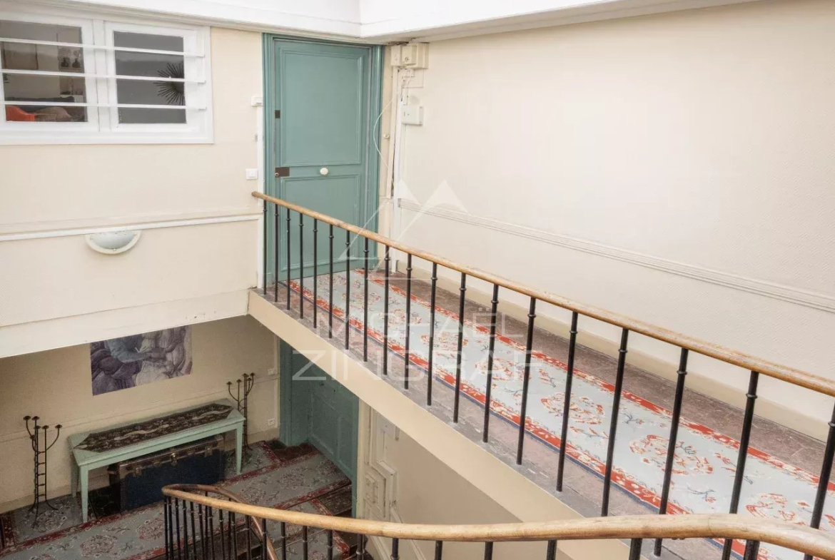 Le bien est situé au troisième et dernier étage sans ascenseur d’un immeuble ancien de bon standing.