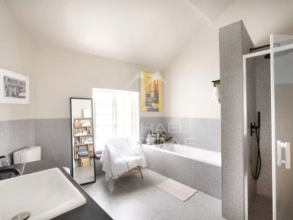 L’appartement se compose d’une entrée, d’une belle pièce de vie bénéficiant d’une très belle hauteur sous plafond, une cuisine ouverte, d’une suite parentale avec salle de bains et toilettes,, une deuxième grande chambre, de toilettes invités et d’une buanderie.