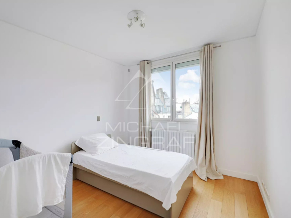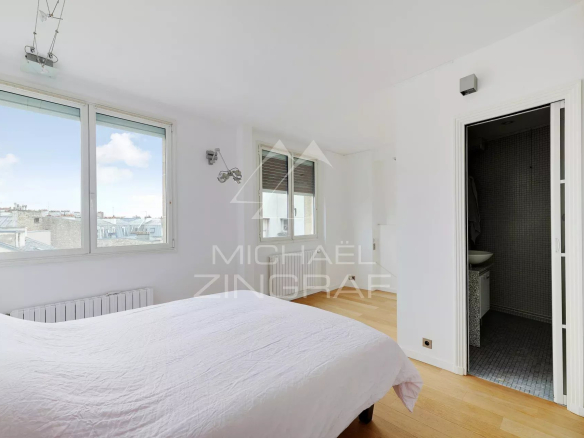 Le bien est baigné de lumière avec des vues sur les toits de Paris ainsi que sur le Panthéon.
