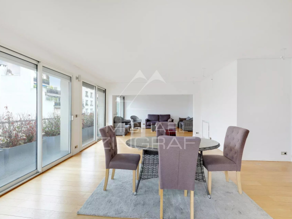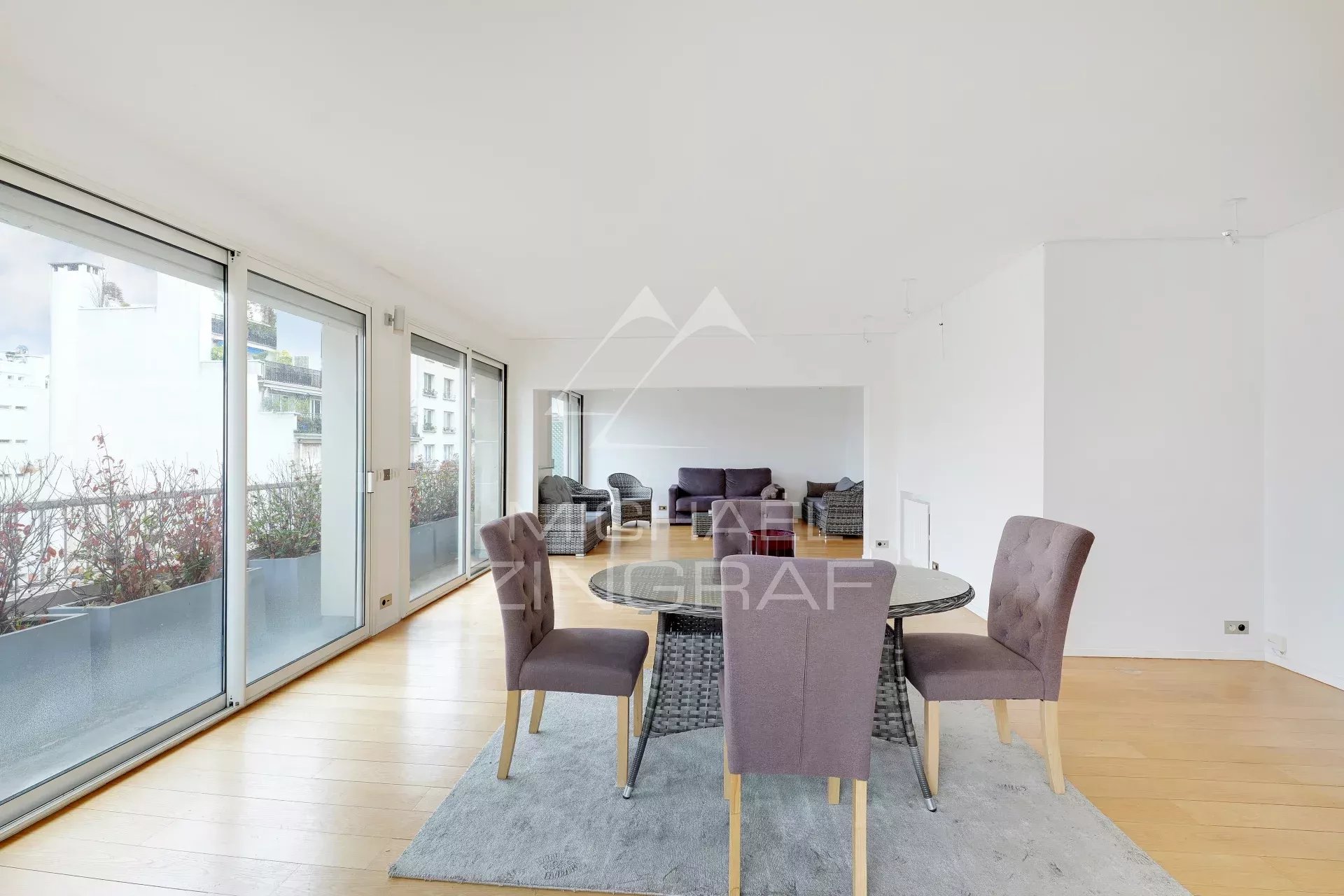 L’appartement est situé au 7ème étage, sa surface est de 145m² avec plus de 80m2 de terrasse.