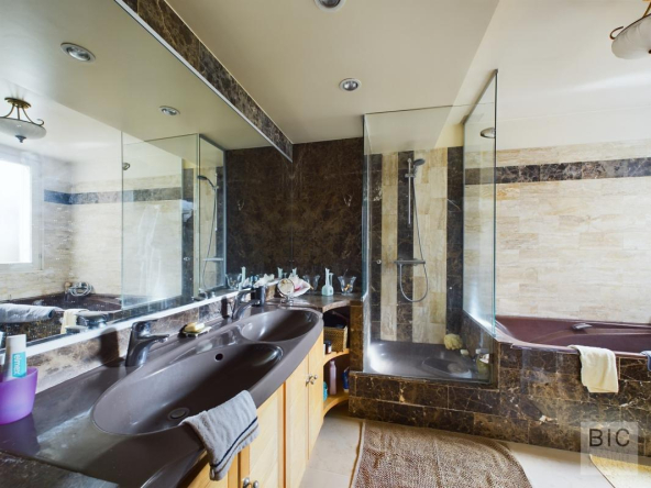 Profitez de deux salles de bains, trois WC, un bureau pour travailler en toute tranquillité, ainsi qu’une bibliothèque pour vos moments de lecture.