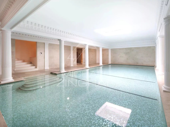 Au sous-sol, un magnifique spa avec une grande piscine, un sauna, un hammam.