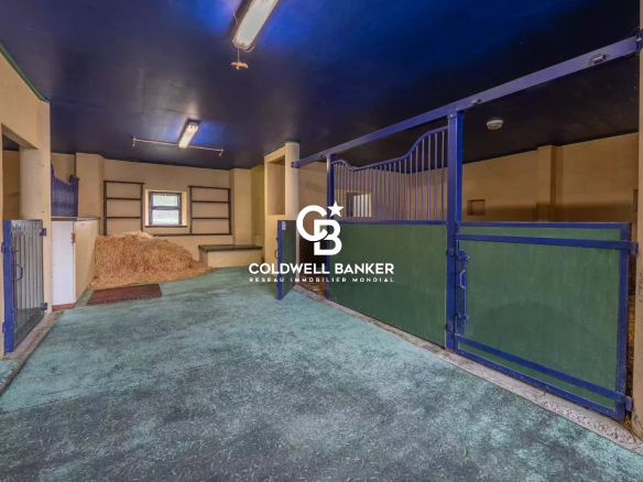S’étendant sur plus de 16 hectares de prairies verdoyantes, la propriété offre des pâturages luxuriants, idéaux pour l’élevage et l’entraînement des chevaux. Des écuries modernes et bien ventilées peuvent accueillir une 20aine de chevaux. Chaque box a sa terrasse qui donne accès direct à sa propre prairie. Deux manèges ouverts, dont un de grandes dimensions, avec un sol en sable de haute qualité, garantissant des conditions d’entraînement optimales toute l’année. Ces installations extérieures incluent un rond de longe et un paddock sécurisés pour les chevaux en repos ou en rééducation. Il y a 2 espaces dédiés au soins vétérinaires et laboratoire d’insémination ainsi qu’une grange et un bâtiment de stockage pour le fourrage et un bâtiment pour les véhicules agricoles et les automobiles.
