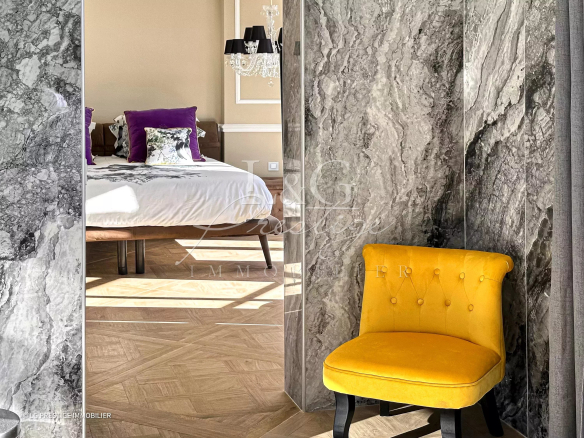 Dès l’entrée, vous serez séduit par le charme et l’élégance de cette demeure qui s’organise sur plusieurs niveaux. À l’étage, la villa dispose de quatre chambres en suite, chacune équipée de sa salle de bain ou salle d’eau privative. Ces chambres lumineuses s’ouvrent sur une vaste terrasse qui révèle une très belle vue mer.