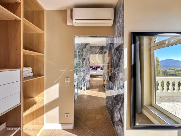 L’agence LG Prestige Immobilier de Mandelieu-La Napoule vous propose cette somptueuse villa de 250 m² aux prestations haut de gamme, nichée sur un terrain paysagé de 1 591 m². Située dans un environnement privilégié, cette propriété offre un cadre de vie unique grâce à son architecture raffinée et ses espaces baignés de lumière.
