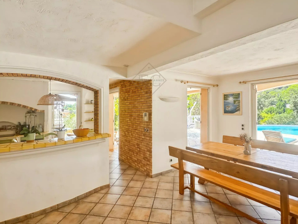 Dès les premiers instants, le charme opère : la villa, baignée de soleil, s’ouvre sur une vue mer dégagée et imprenable. Elle développe environ 240 m² habitables, avec de beaux volumes et une atmosphère chaleureuse.
