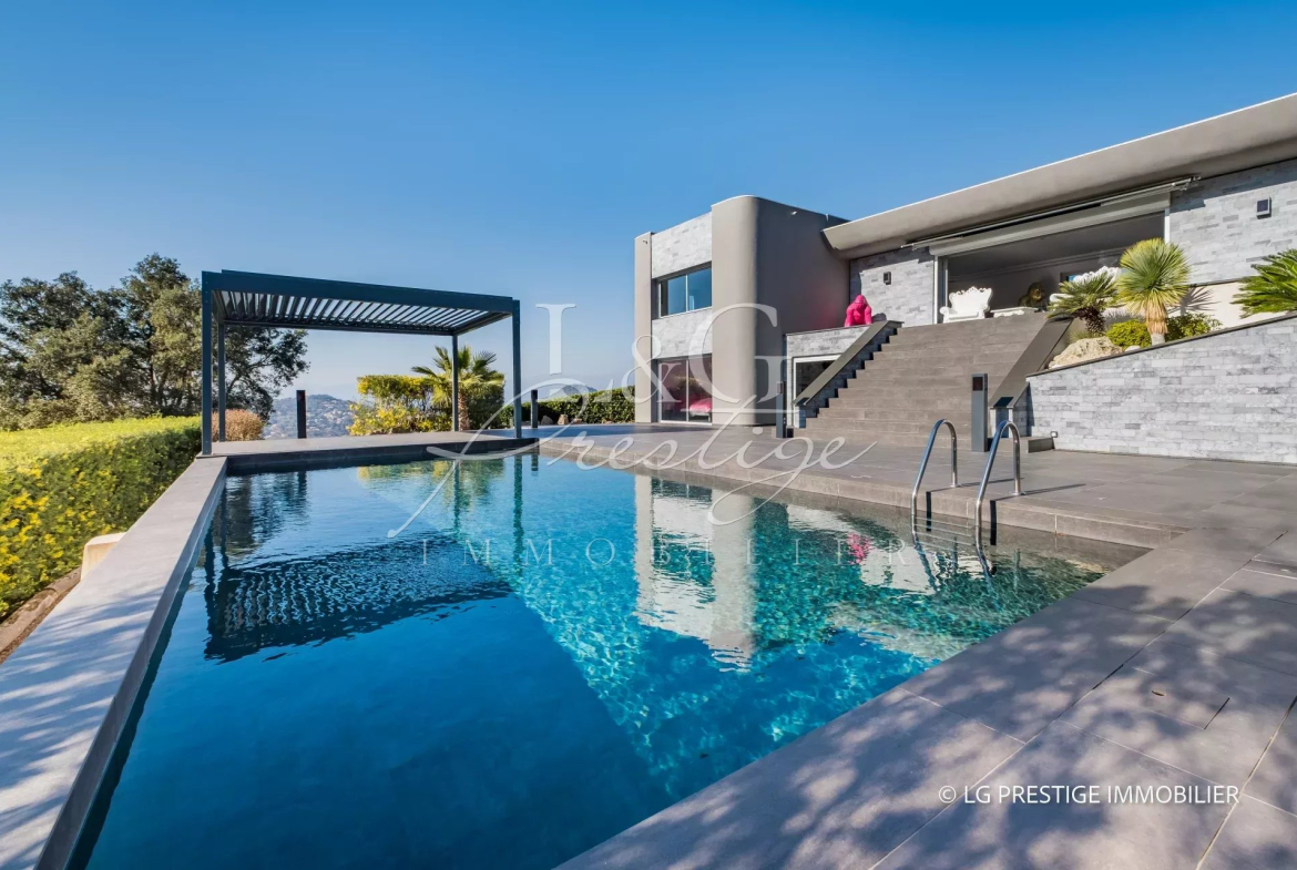 Votre agence LG Prestige Immobilier de Mandelieu-La Napoule, vous propose cette magnifique villa contemporaine de 300m² aux prestations de grande qualité.