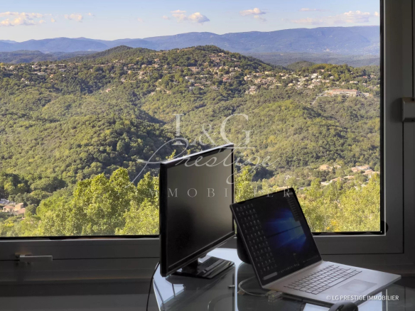 Elle se compose de plain pied d’un grand séjour donnant sur deux grandes terrasses avec piscine, d’un Pool House avec vue dégagée sur les collines, une cuisine entièrement équipée, une chambre de Maître avec sa salle de bain et son dressing et un bureau. Au Rez-de-jardin: une chambre, une salle de bain, un bureau, une salle de cinéma ainsi que deux 2 pièces indépendants. Un garage pour 2 voitures. Proche de l’autoroute et sans aucun travaux à prévoir.