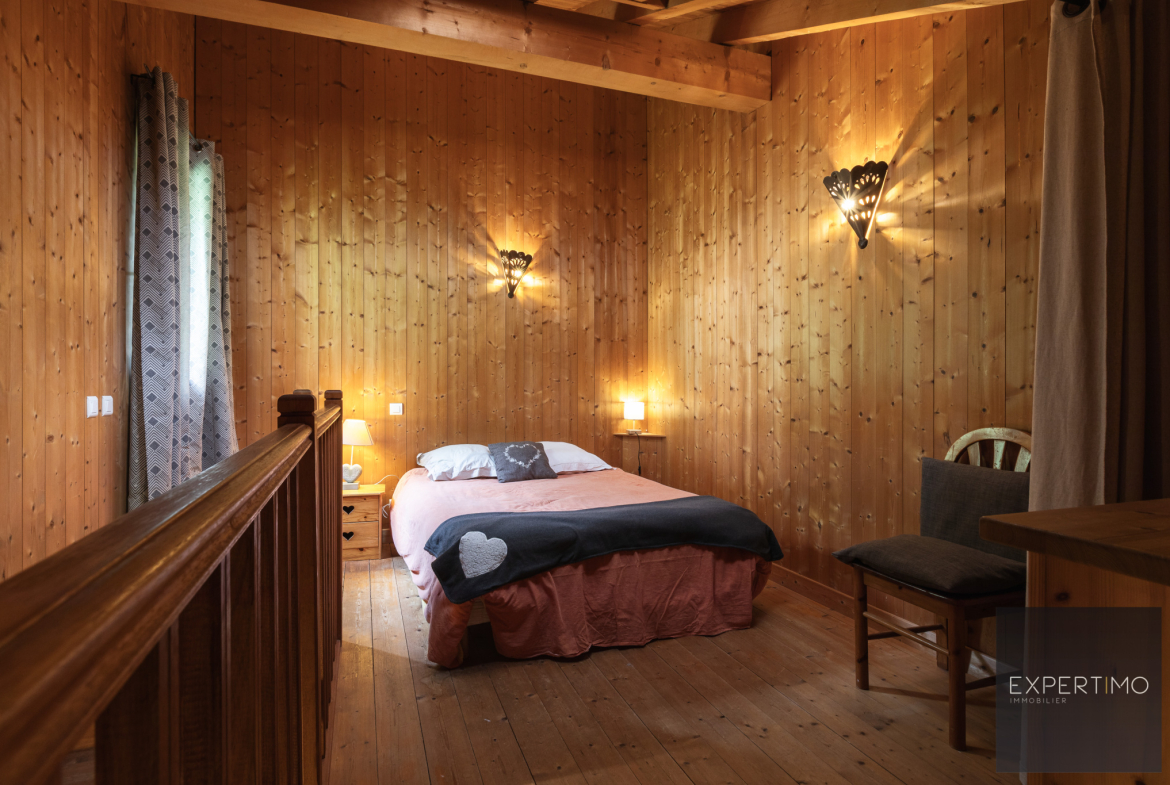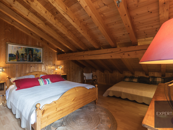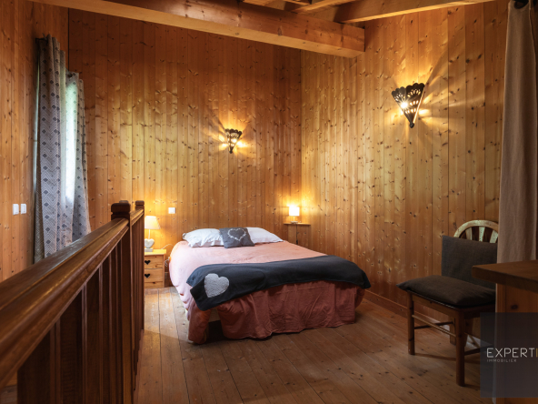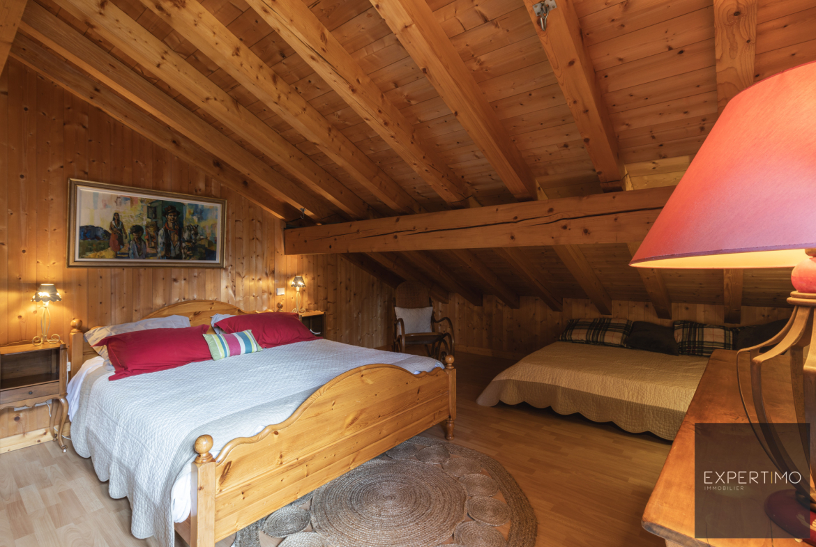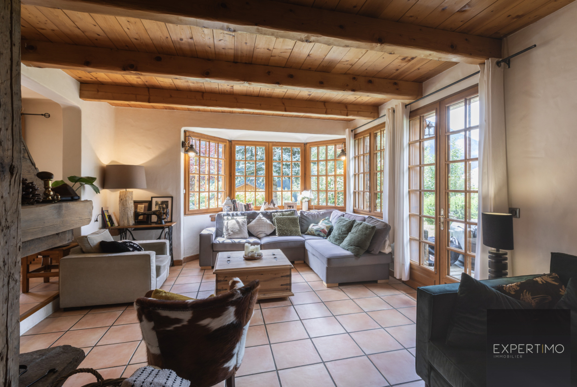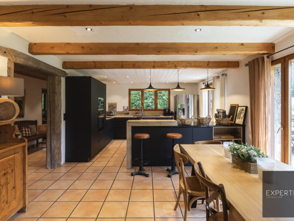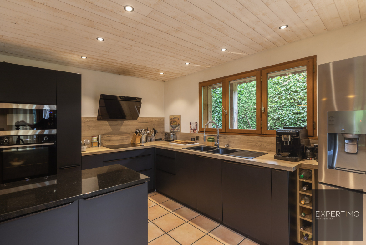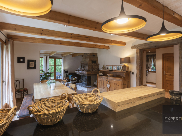 Très beau chalet clair et lumineux, situé dans un quartier prisé du village, non mitoyen, édifié sur trois niveaux, comprenant :- Niveau zero (rez de rue) accès par tunnel (possibilité de garer deux voitures) desservant : garage ( 76,99m2), cave ( 25,99m2) et deux salles de sport ou musique, escalier d’accès au niveau supérieur, Niveau un :Entrée (14,42m2) desservant : buanderie, bureau (ou chambre), wc, grand volume séjour-salon-cuisine (récente)(59,78m2) avec cheminée insert et bow-window, Sur même niveau et accès intérieur ou extérieur : un volume séjour-salon-cuisine (17,50m2 L Carrez + 1,83m2) escalier privatif d’accès au niveau supérieur.-