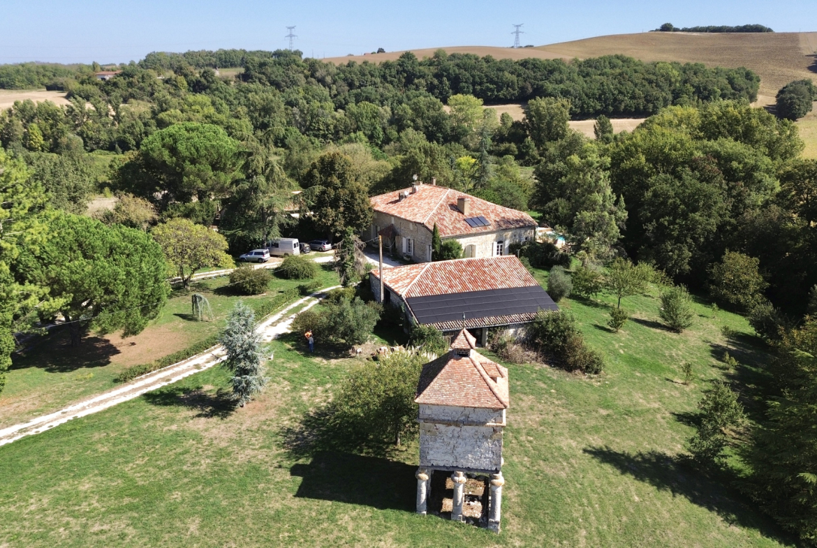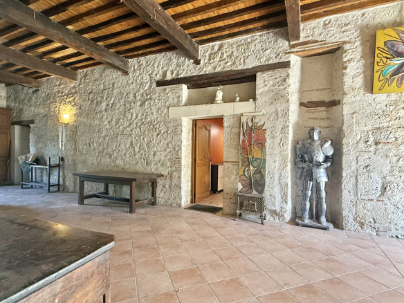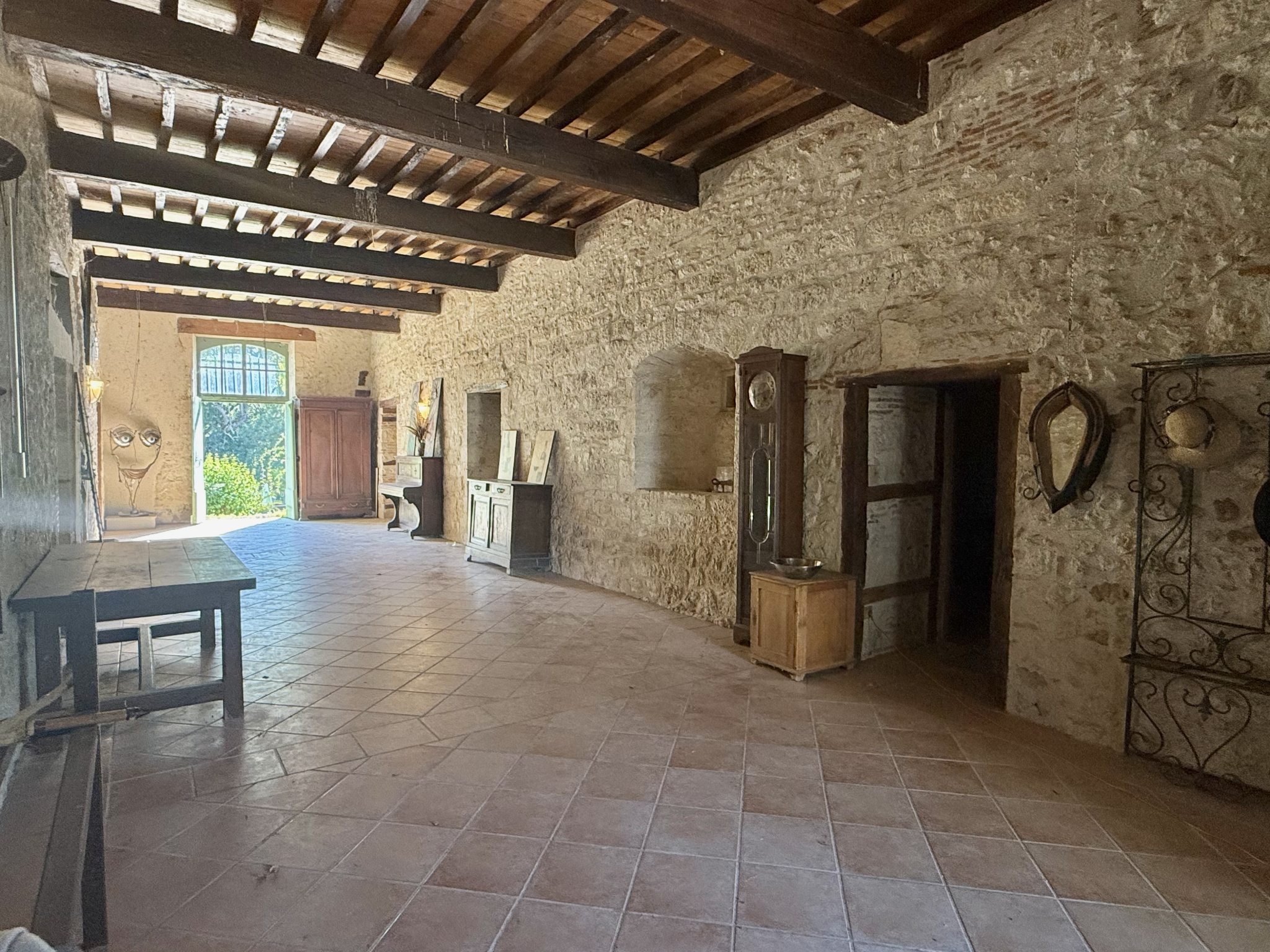 Dans un cadre champêtre et paisible, près d’Agen et du Gers, cette grande demeure de plain-pied séduit par son élégance, son authenticité et les nombreuses possibilités qu’elle offre. Elle s’organise autour d’un vaste hall central, avec plafonds de trois mètres de haut , qui donne d’emblée une belle impression d’espace et de caractère.